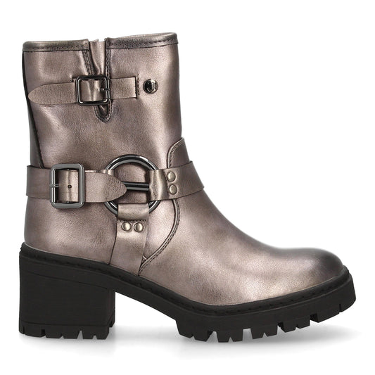 Botín de mujer estilo biker con caña media y cierre lateral de cremallera.