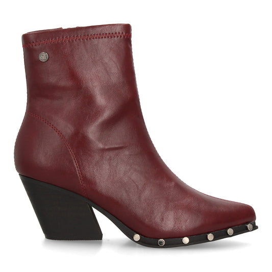 Botín de mujer con tacón cubano detalles de tachuelas estilo moderno acab