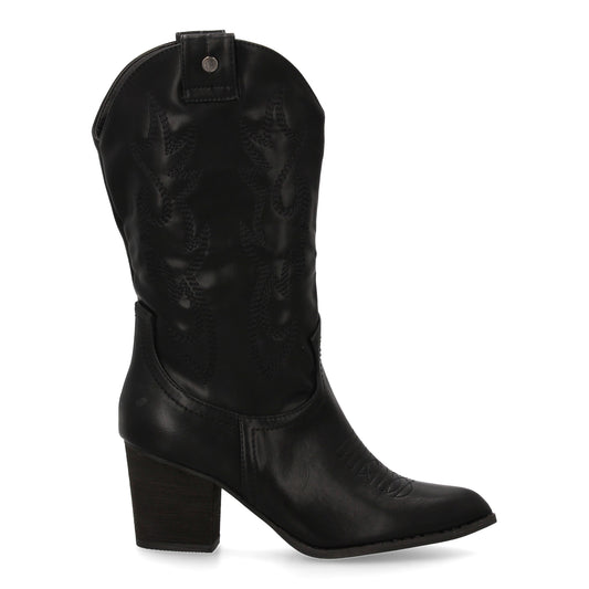 bota estilo western acabado liso bordados decorativos en la caña. tacón Ancho