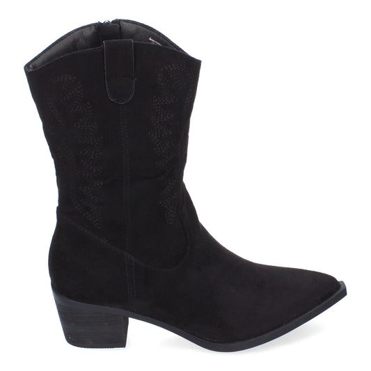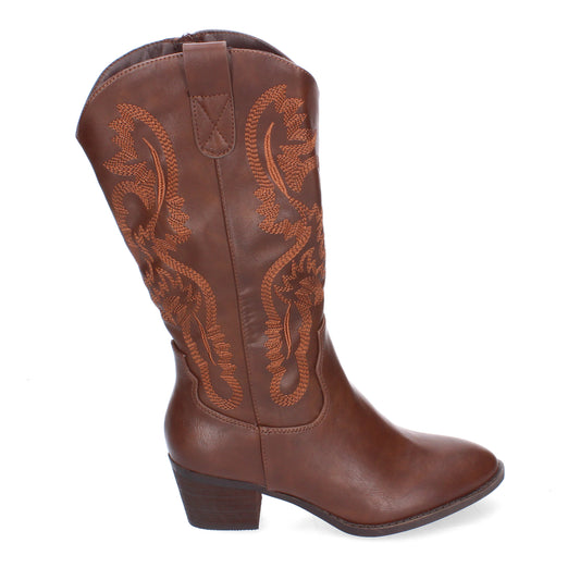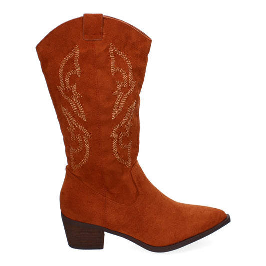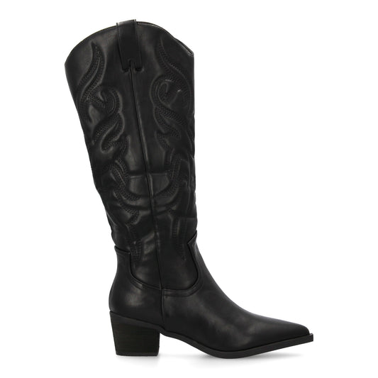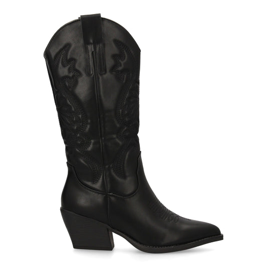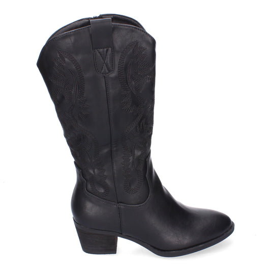 Bota cowboy de caña alta con bordados para mujer. tacón medio y punta fina est