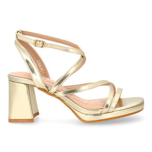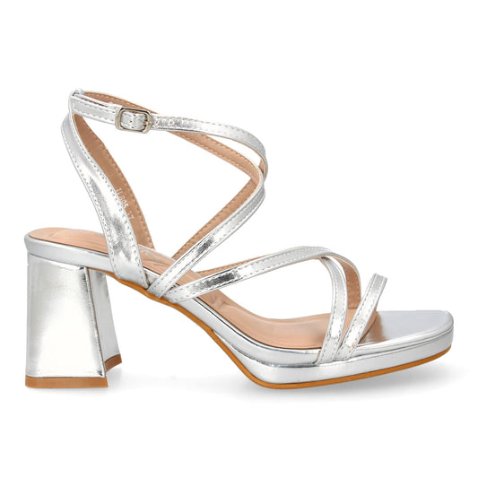 Sandalia de tacón para mujer con diseño de tiras cruzadas finas y delicadas