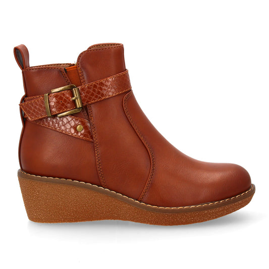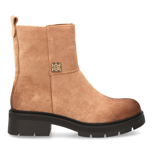 Botín moderno con estampado liso.Incorpora un adorno metálico lateral. Suel