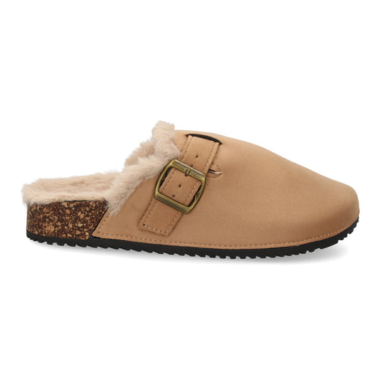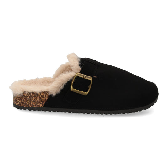 Zueco tipo sabot para mujer con punta cerrad interior forrado de borreguit