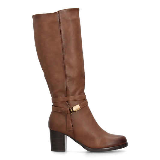 Bota alta de mujer con estampado liso. Cierre de cremallera cierre lateral