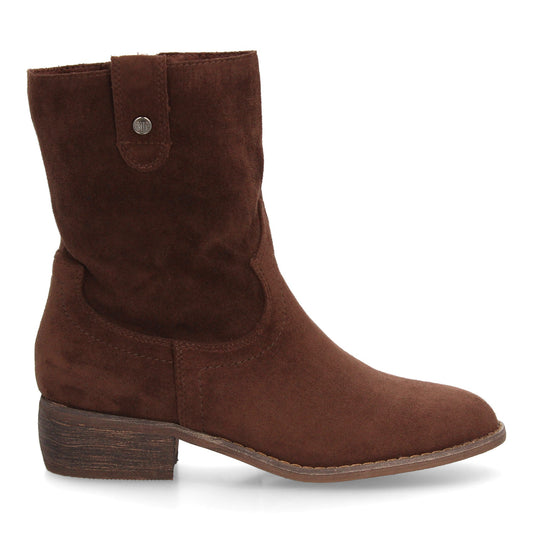 Botín campero con adorno de tachuelas metálicas punta fina y tacón bajo. P