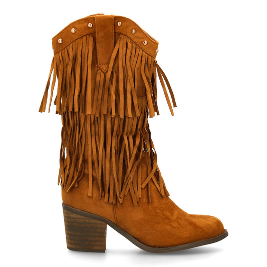 Bota cowboy con flecos para mujer. Acabado tipo ante varias capas de flecos. Ta