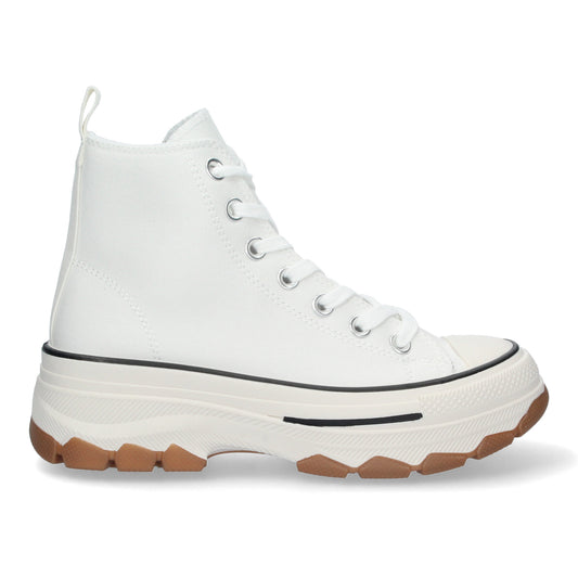 Zapatilla Abotinada de Plataforma para Mujer Comoda Estilo Bamba Material de Lona y Cierre de Cordones