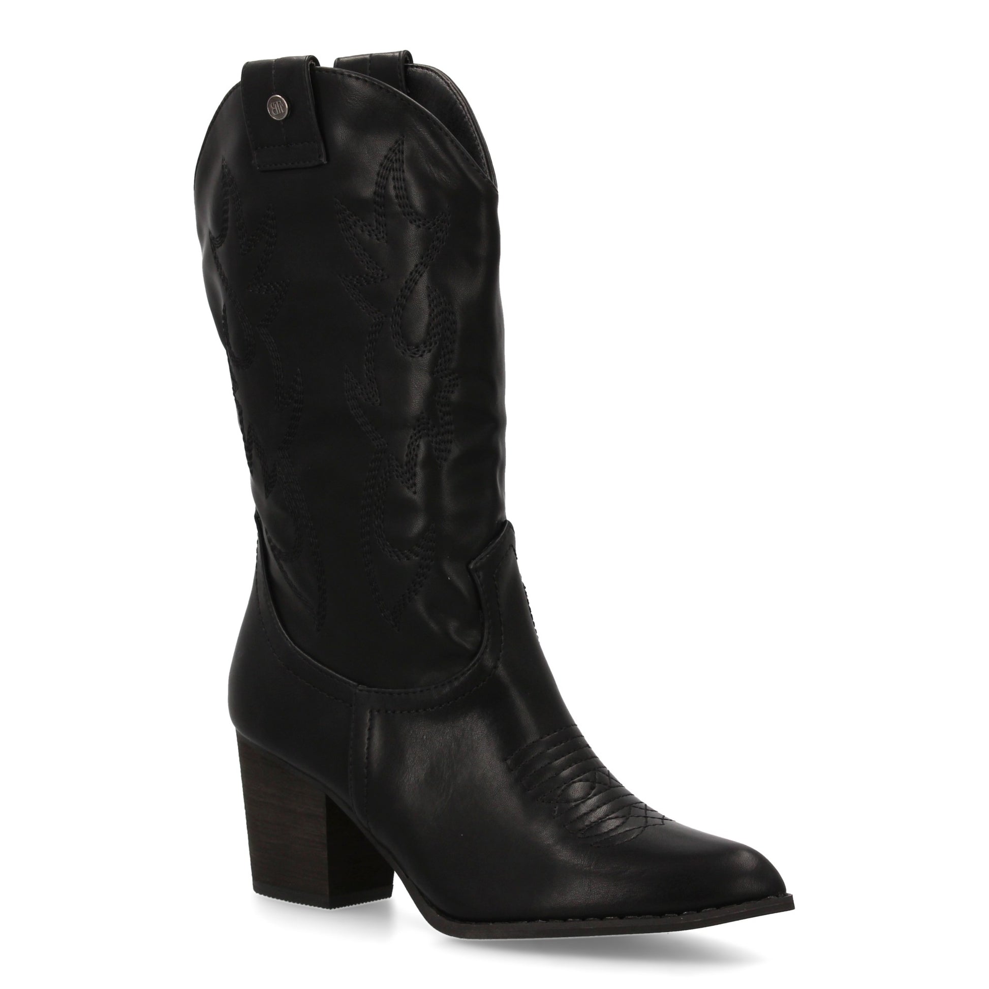 bota estilo western acabado liso bordados decorativos en la caña. tacón Ancho
