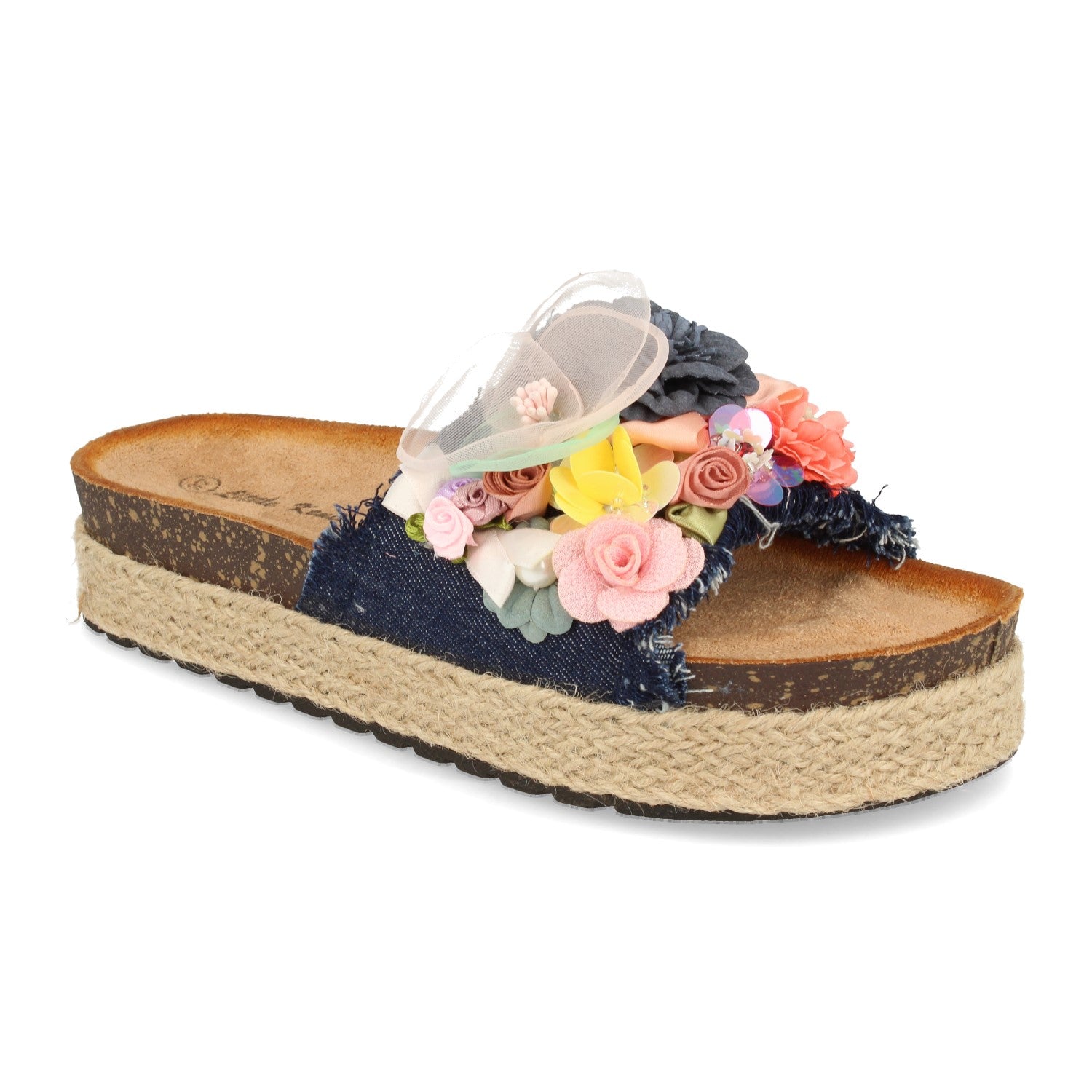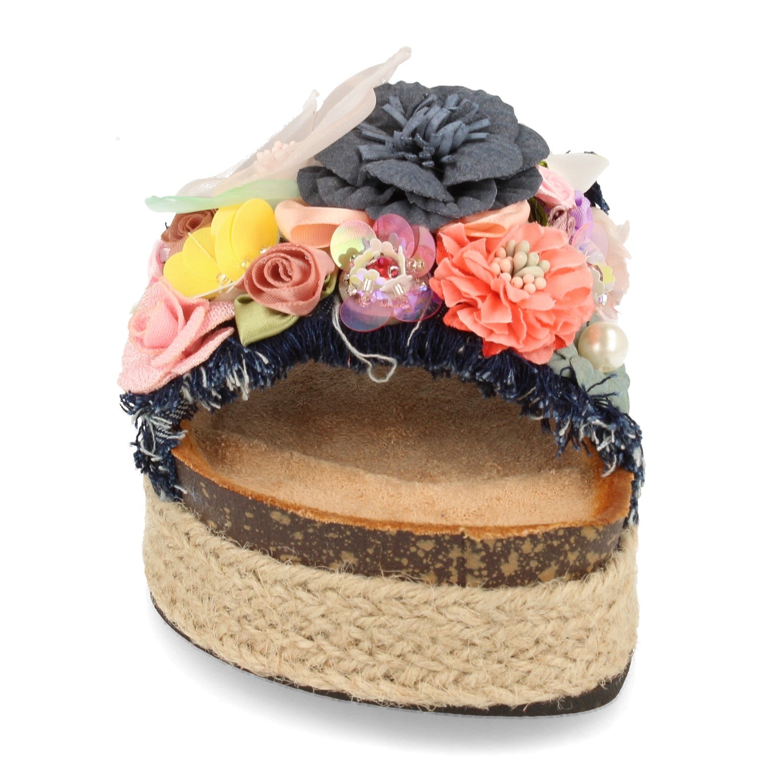 Sandalia de Plataforma con Yute Pala Adornada con Flores Planta BIO y Anatomica Primavera Verano