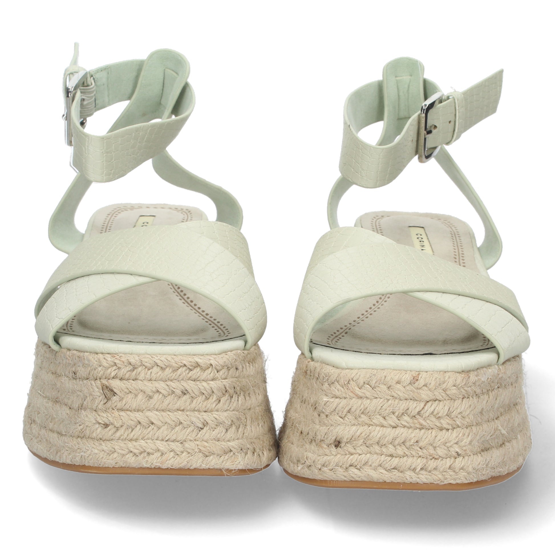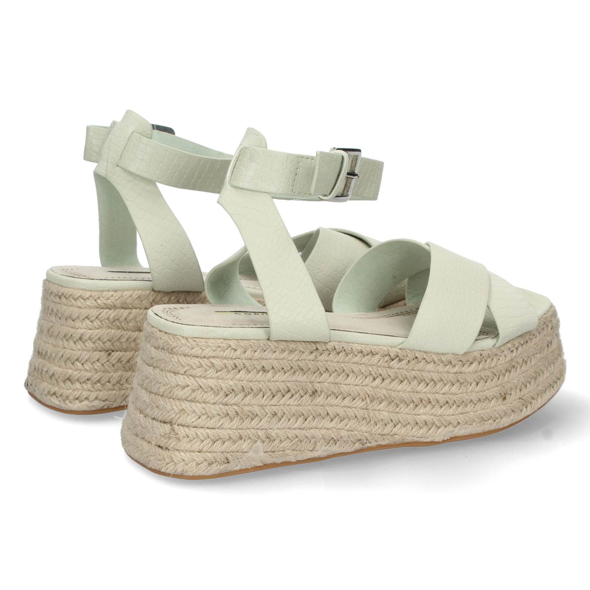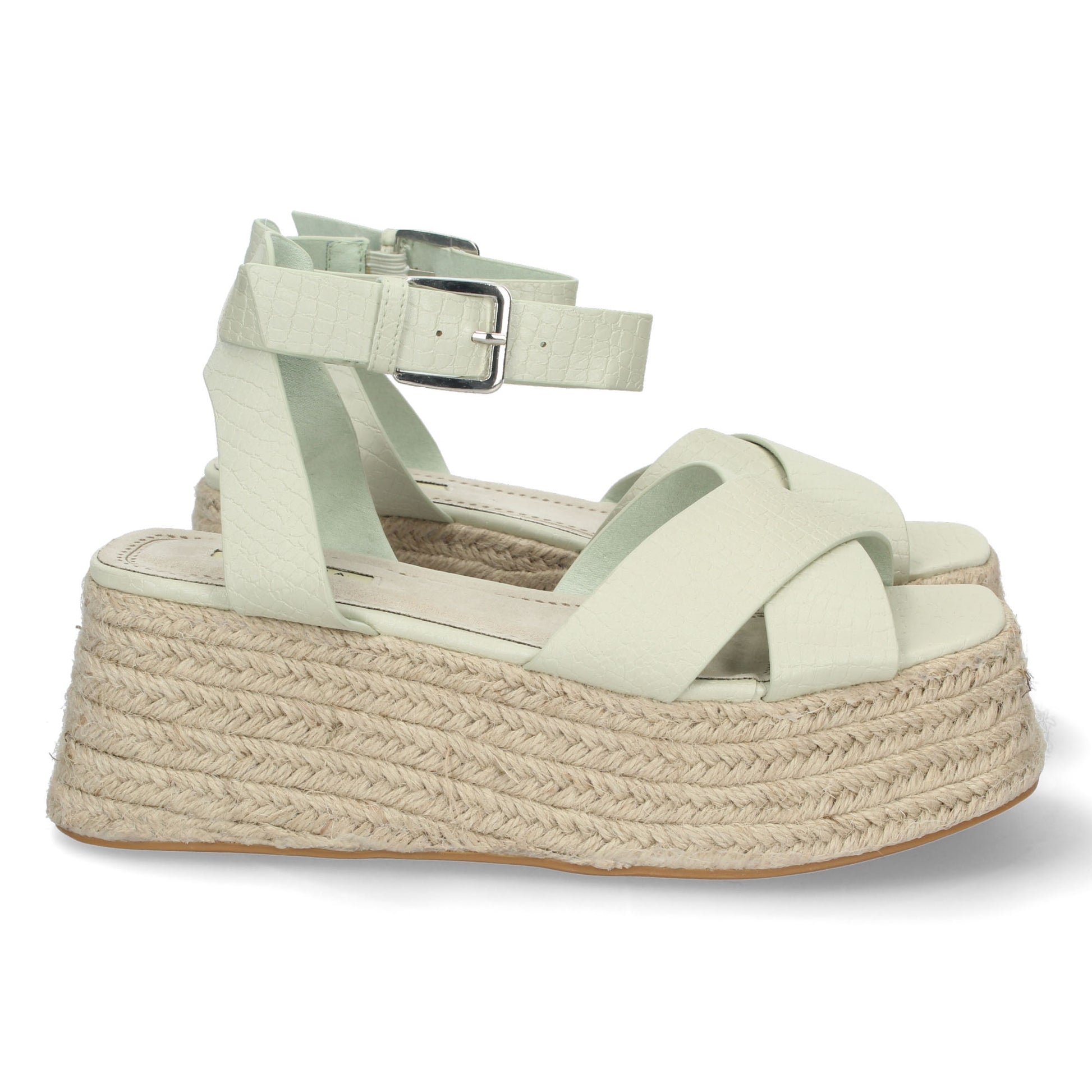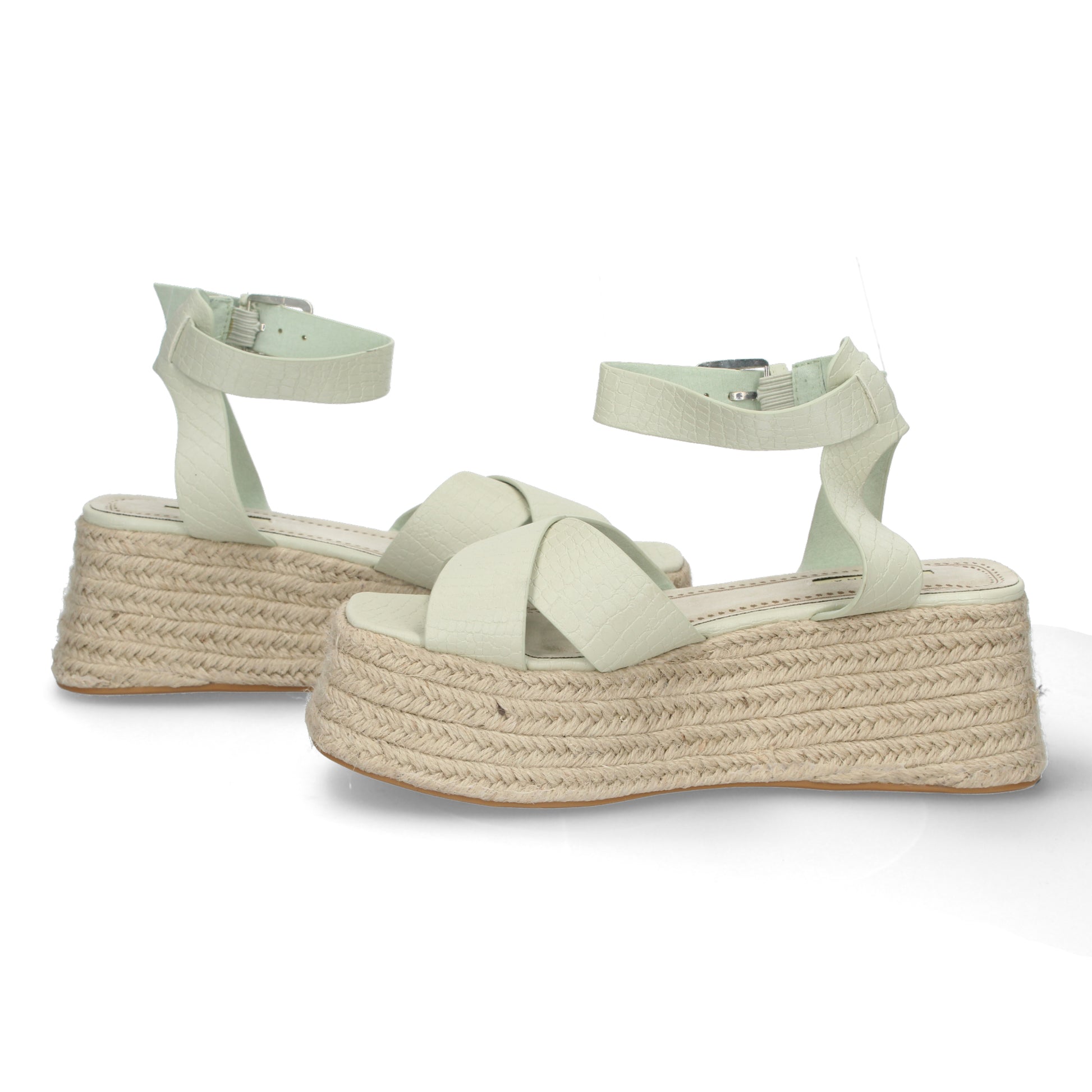 Sandalia de Plataforma para Mujer Comoda Forrada de Yute Palas Cruzadas con Grabado de Serpiente y Cierre de Hebilla