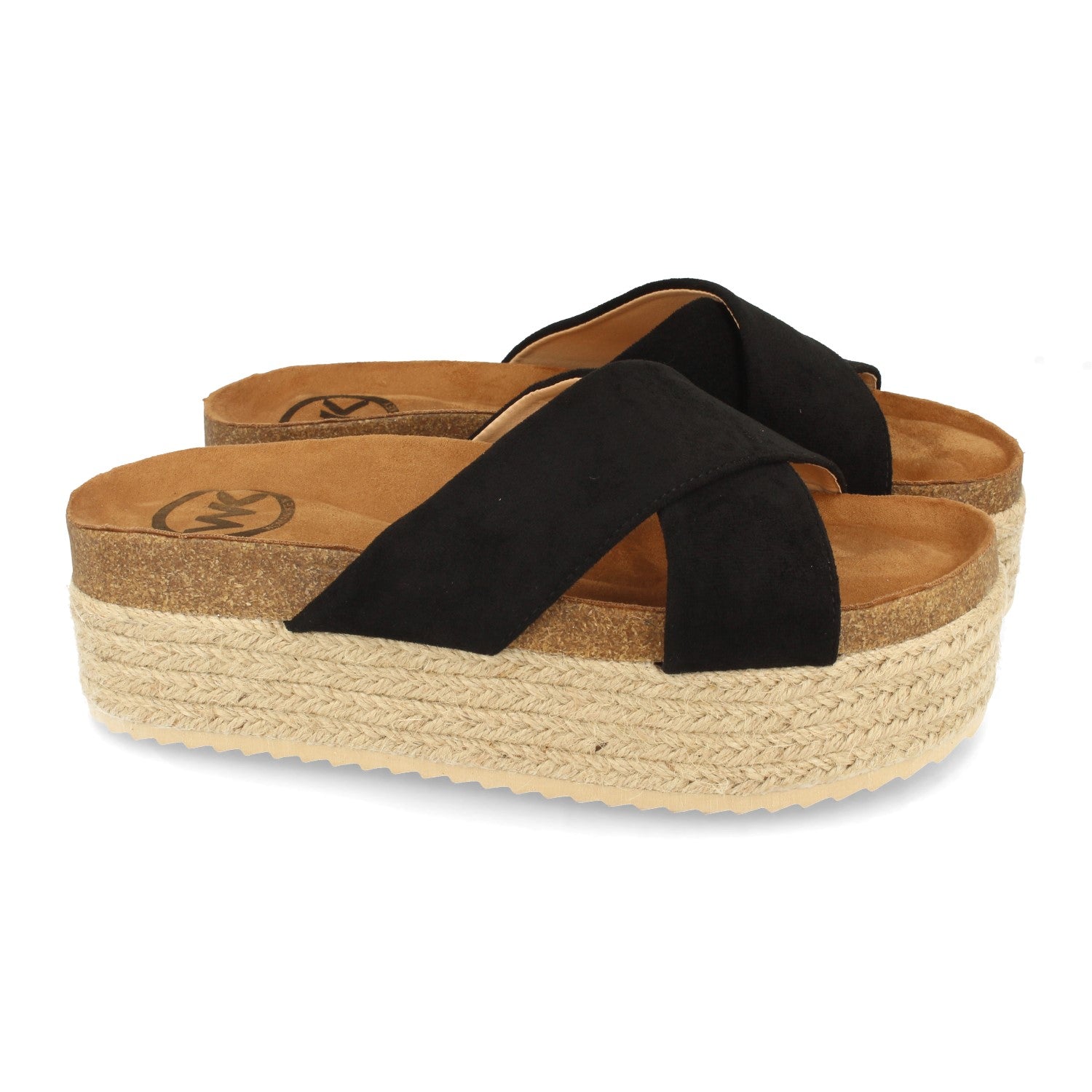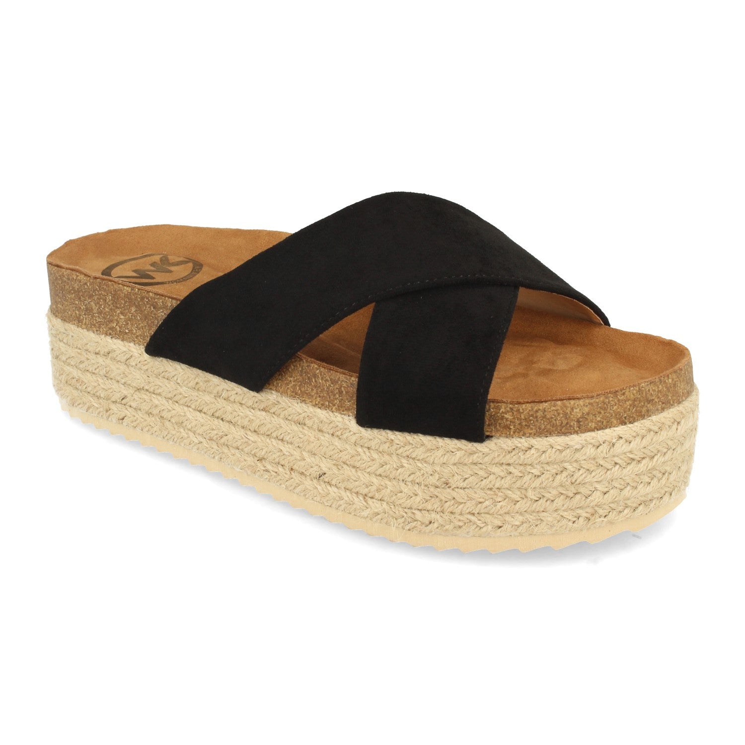 Sandalia de Plataforma para Mujer Forrado de Yute con Planta Anatomica y Palas Cruzadas Primavera Verano
