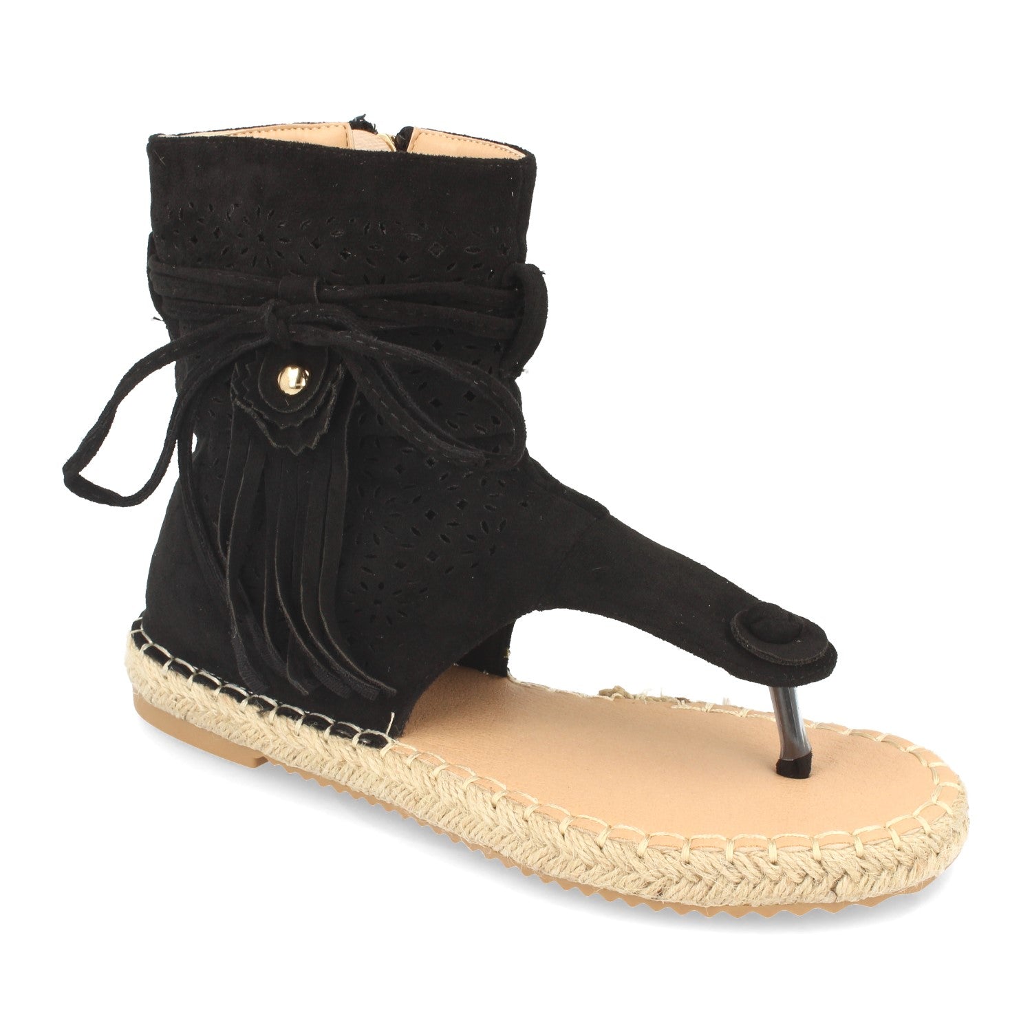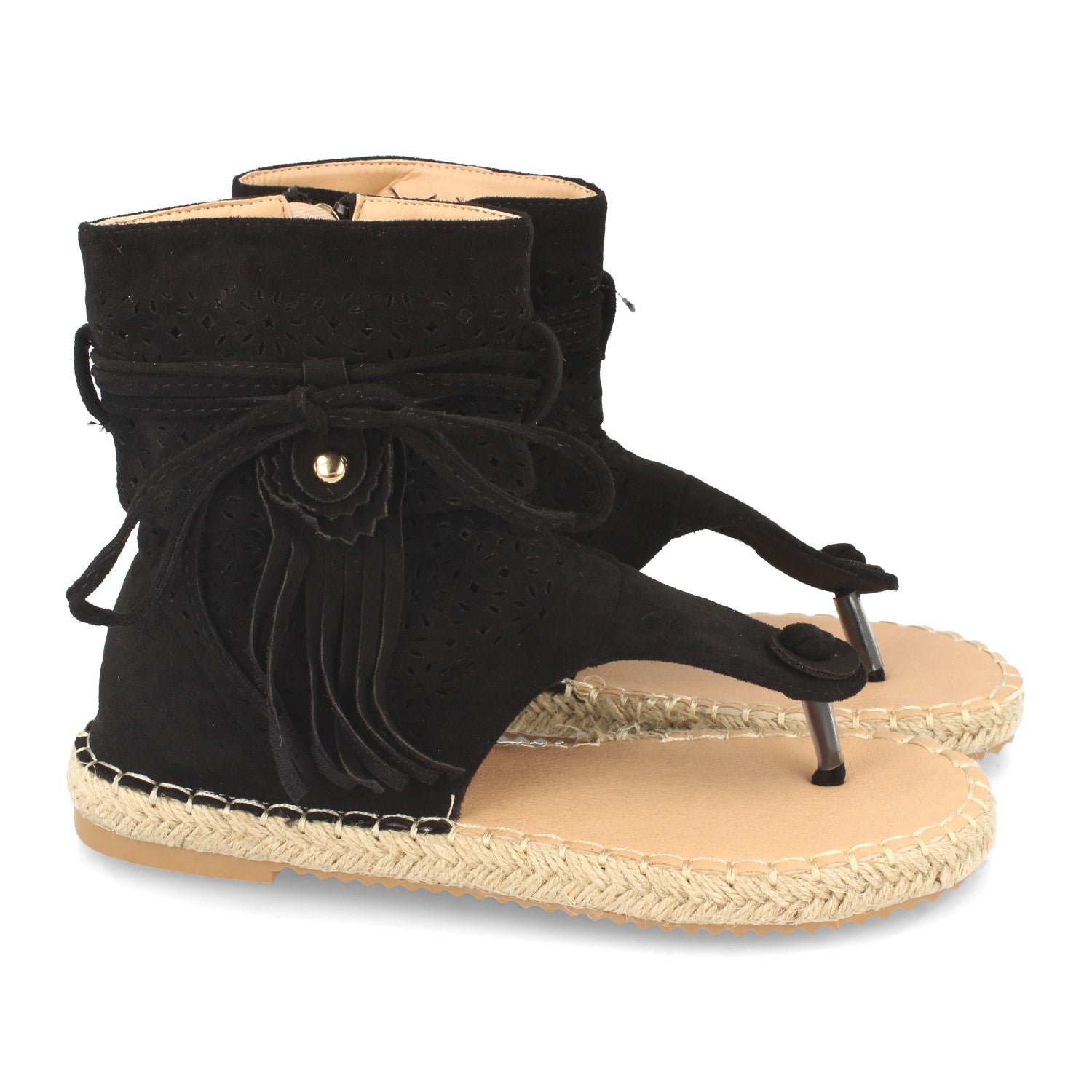 Sandalia Abotinada para Mujer de Tipo Esclava con Yute Flecos y Cierre de Cremallera Primavera Verano