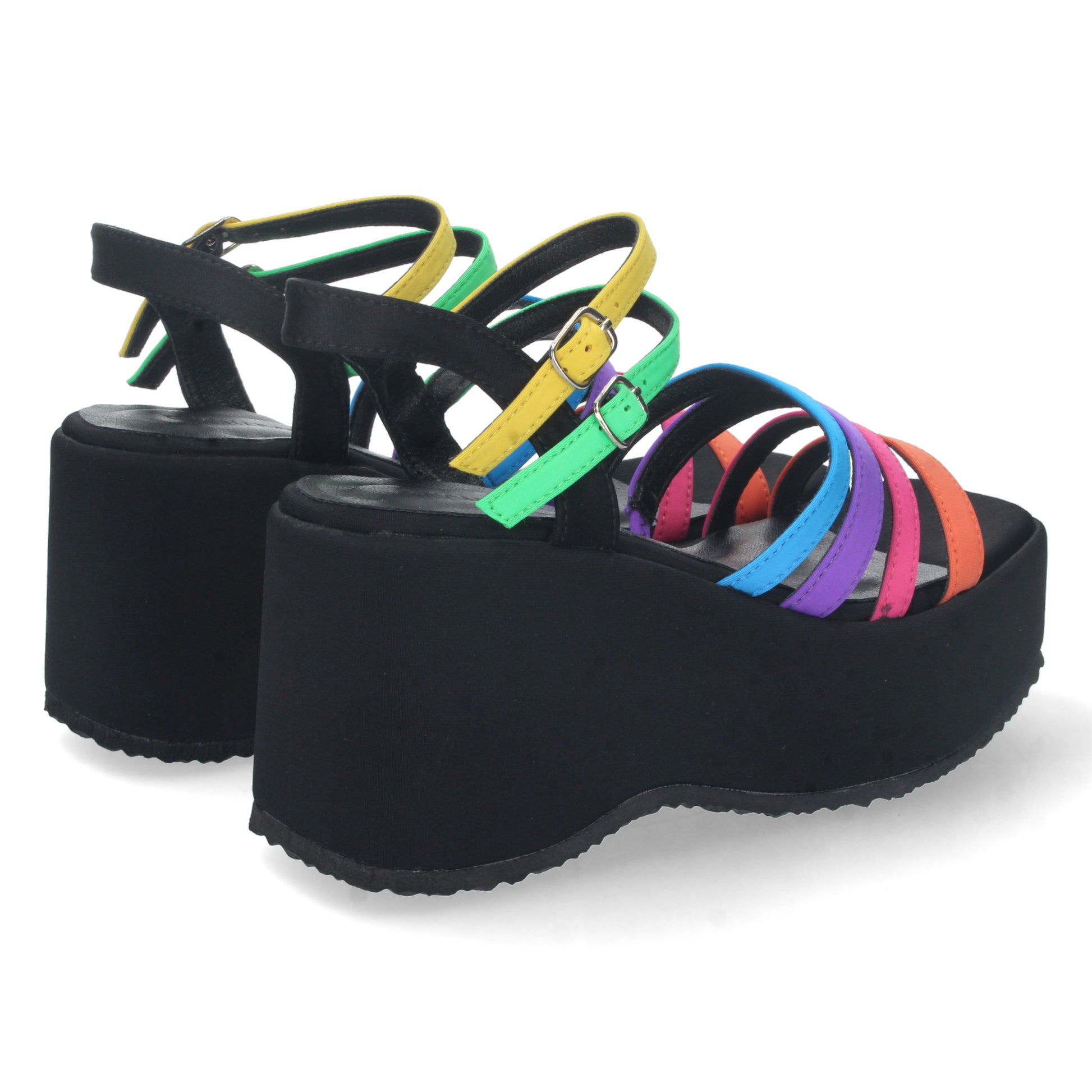 Sandalia de Plataforma para Mujer Comoda con Pala de Tiras Multicolor y Doble Cierre de Hebilla