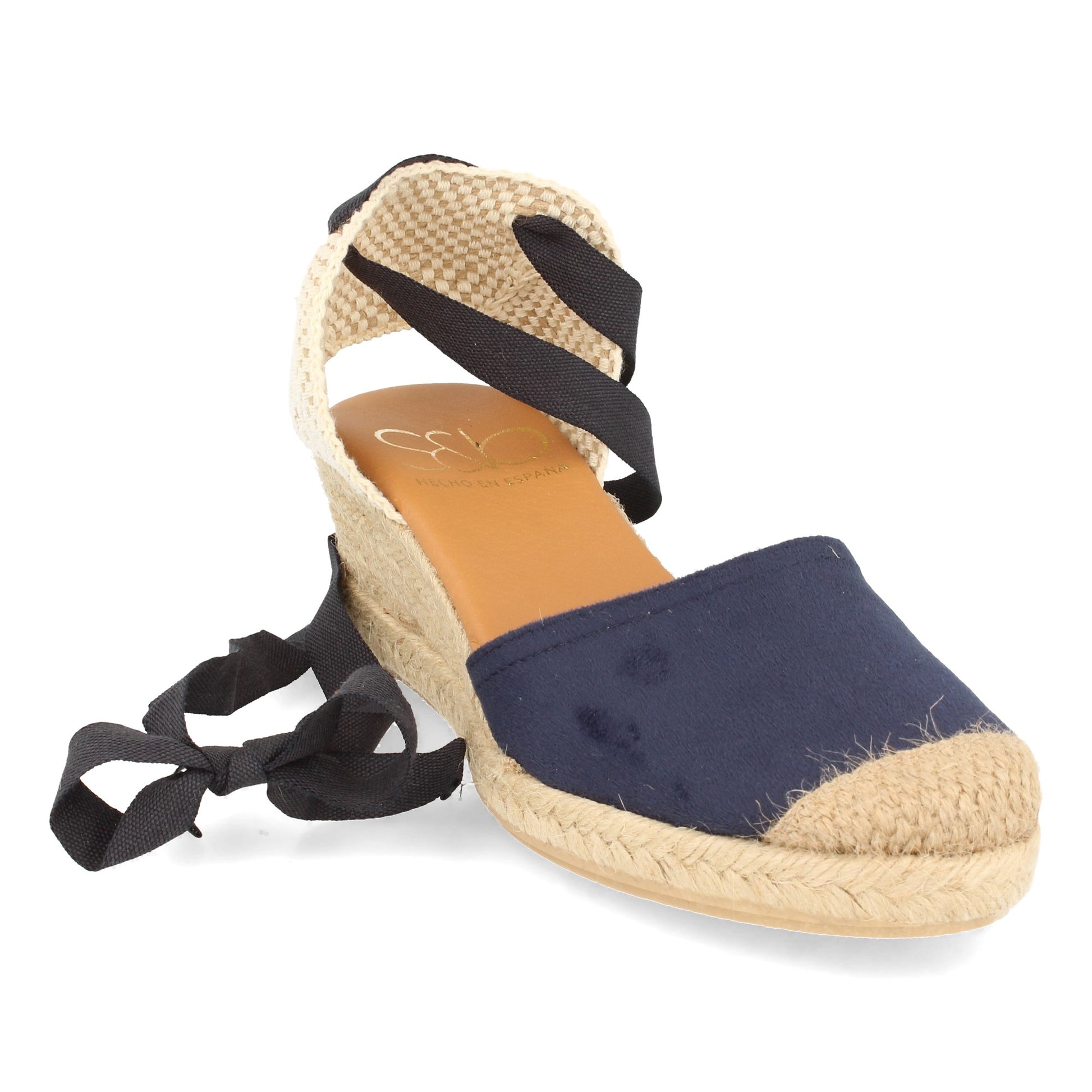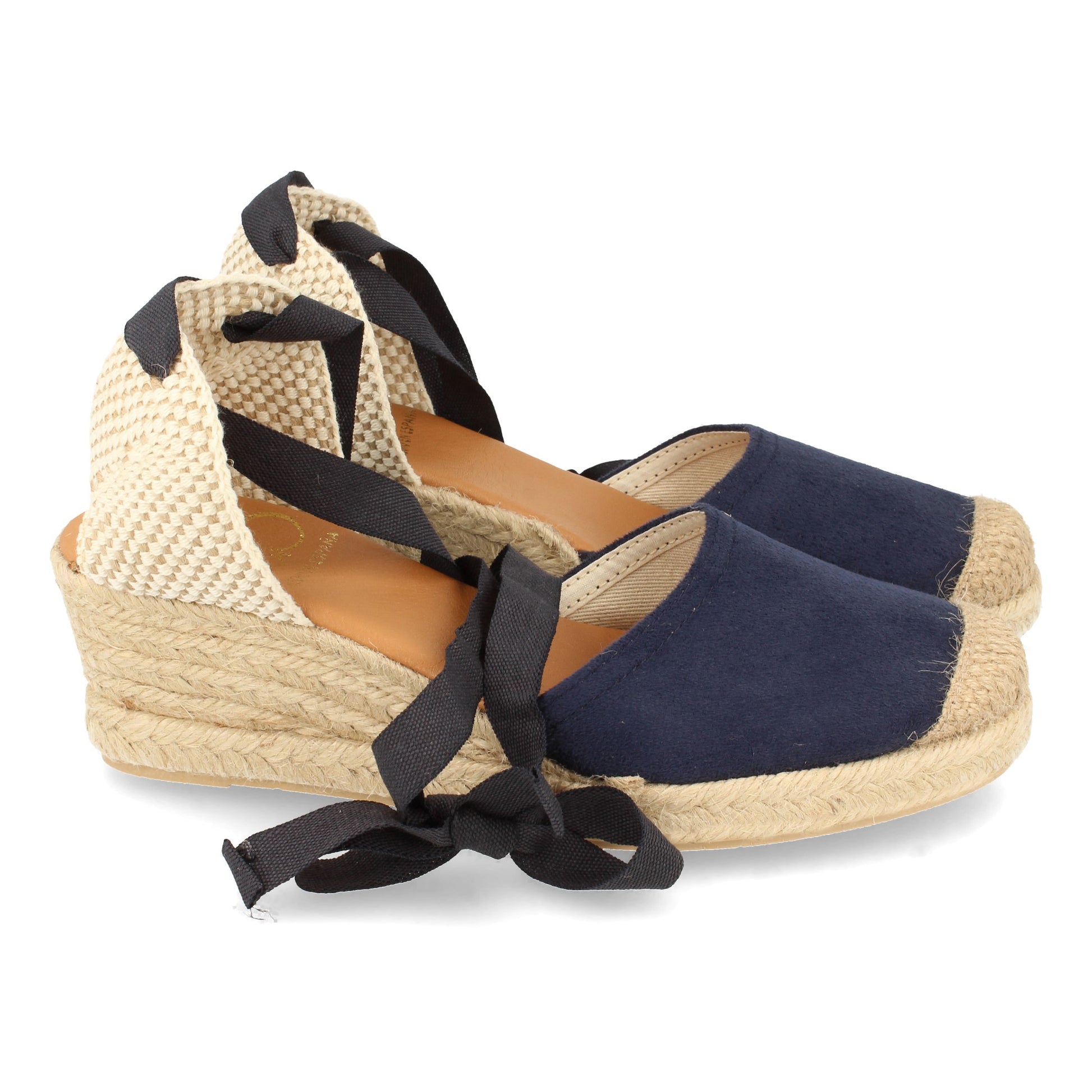 Alpargatas de cuña para Mujer Sandalia Cerrada estilo Valenciana Hecho en Espa�a Yute 4 Cuerdas Tiras al Tobillo Primavera Verano