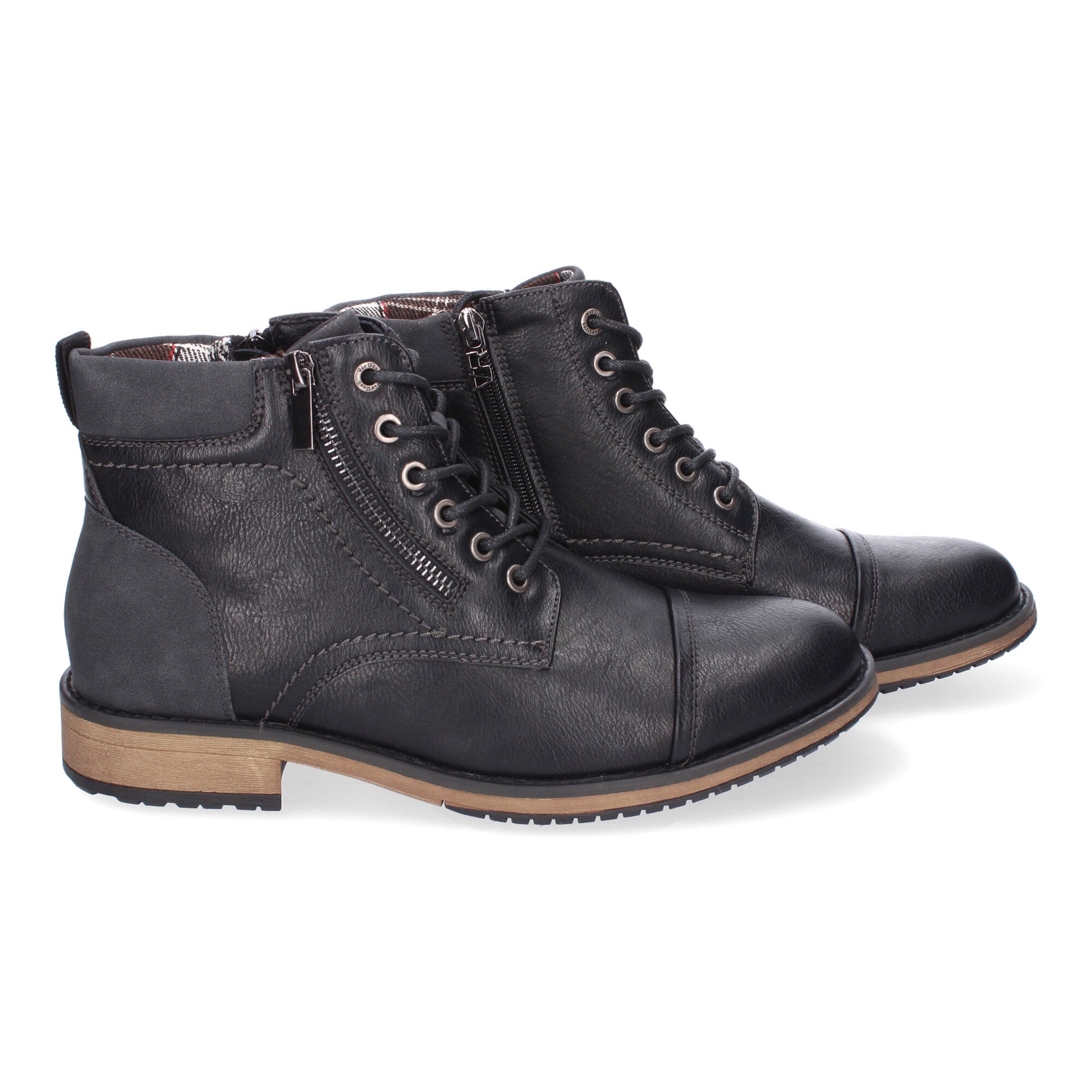 Botines de Hombre Comodos y Elegantes Diseño Clasico con Punta Redonda Adorno de Cremallera Cierre de Cordones y Cremallera Lateral.