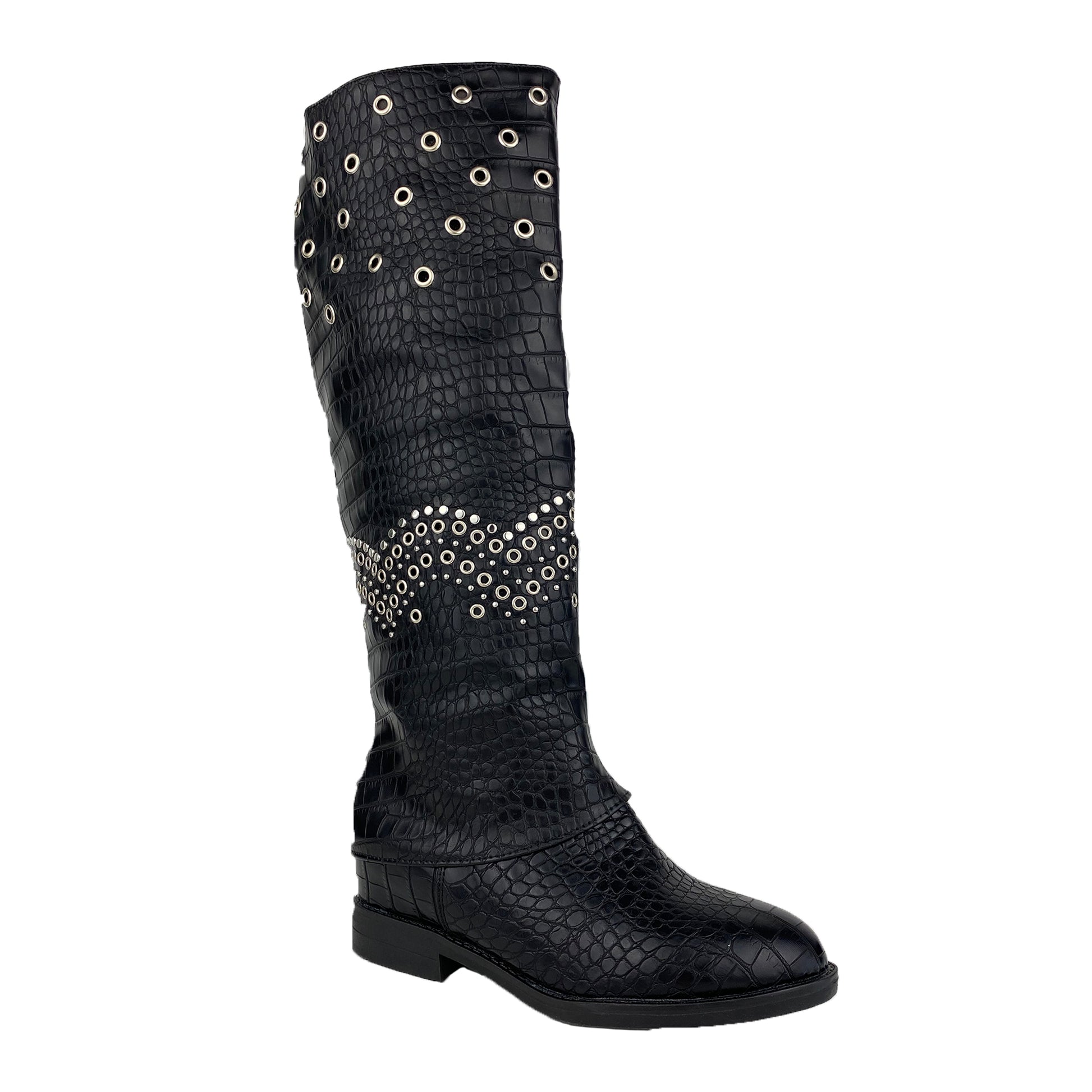 Bota de Mujer con Estampado de Cocodrilo Tachuelas en Cañay Cierre de Cremallera Otoño Invierno
