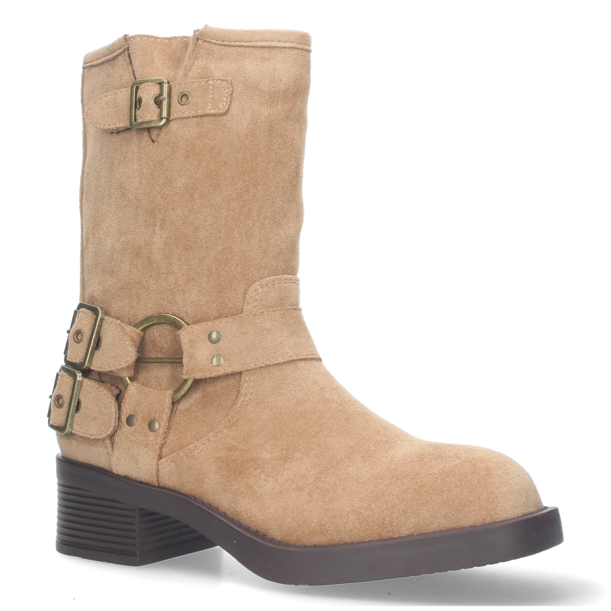 Bota motera para mujer con tacón bajo y cierre de cremallera cómodas para vestir