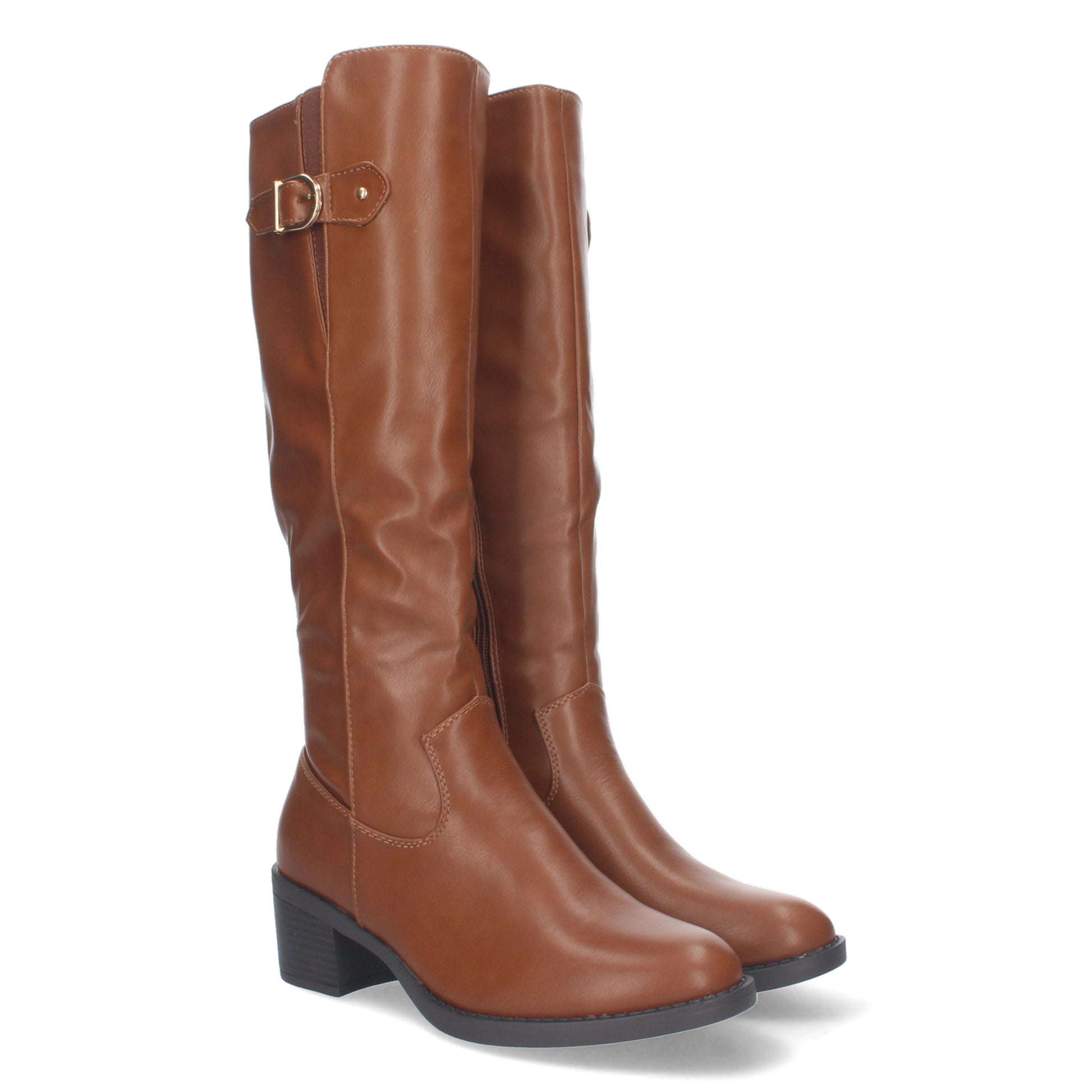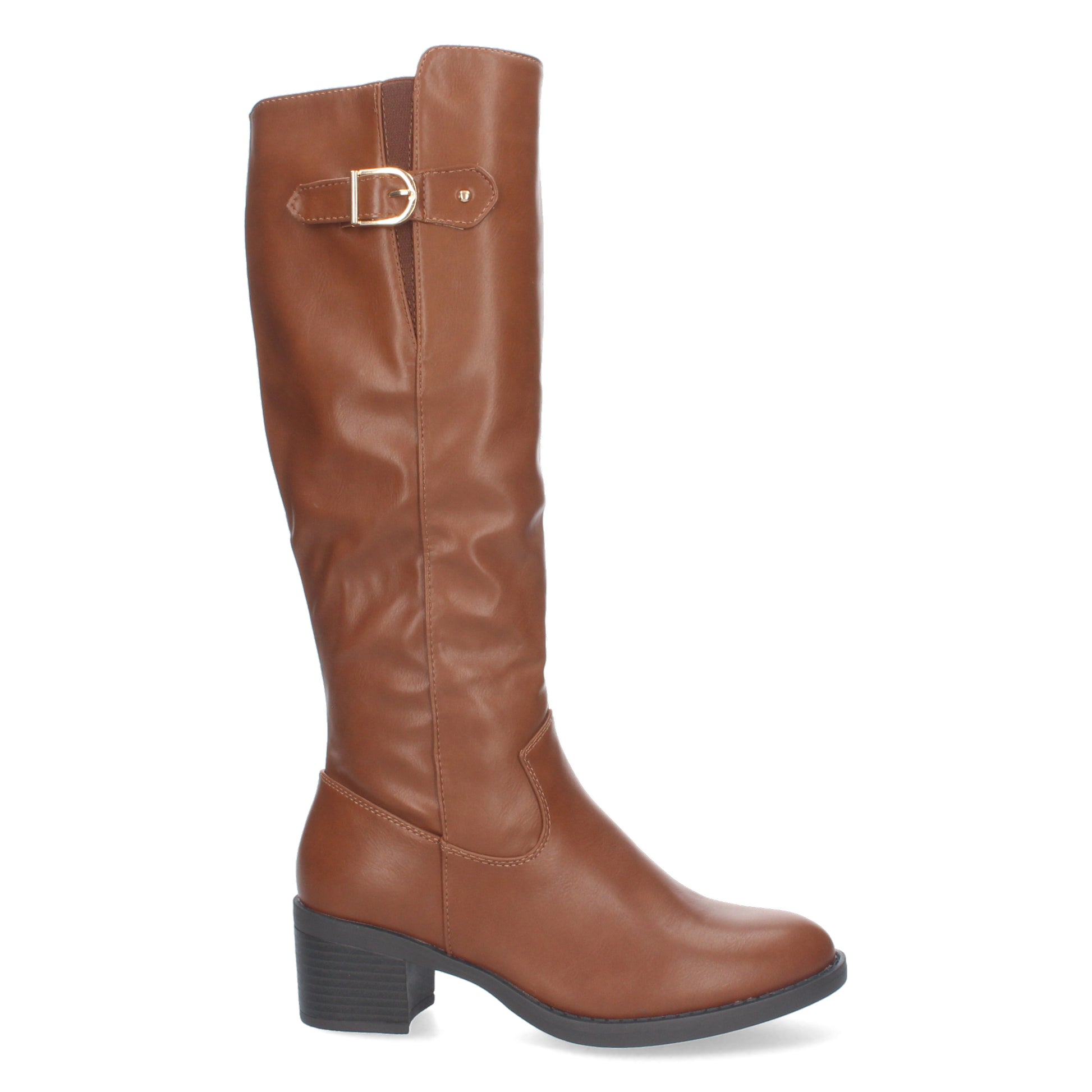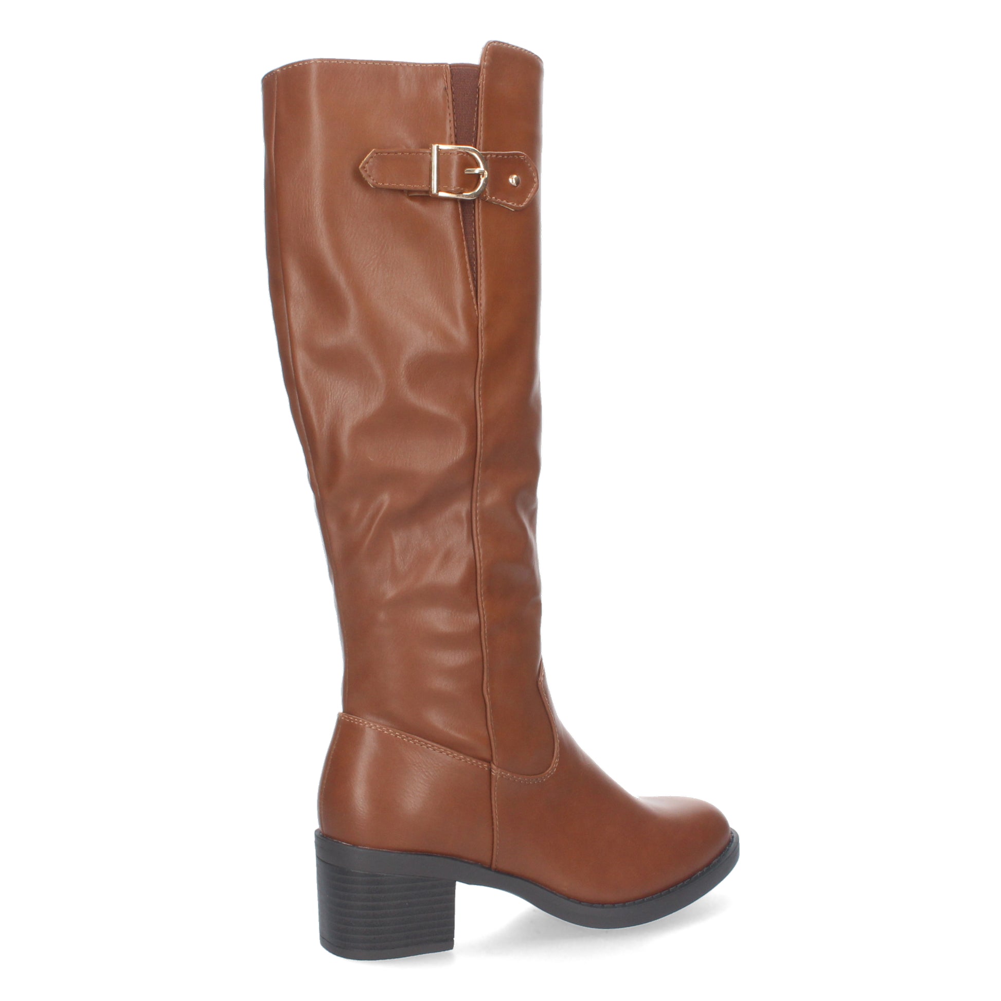 Bota Lisa de Tacón Bajo con Cierre de Cr