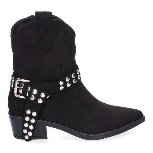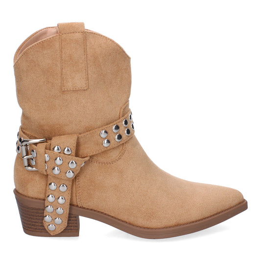Botín de mujer con tacón estilo campero. Tacon cubano con flecos acabado en punt
