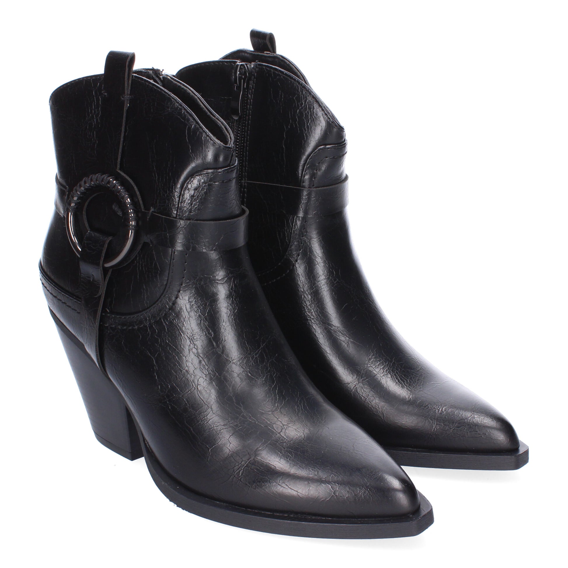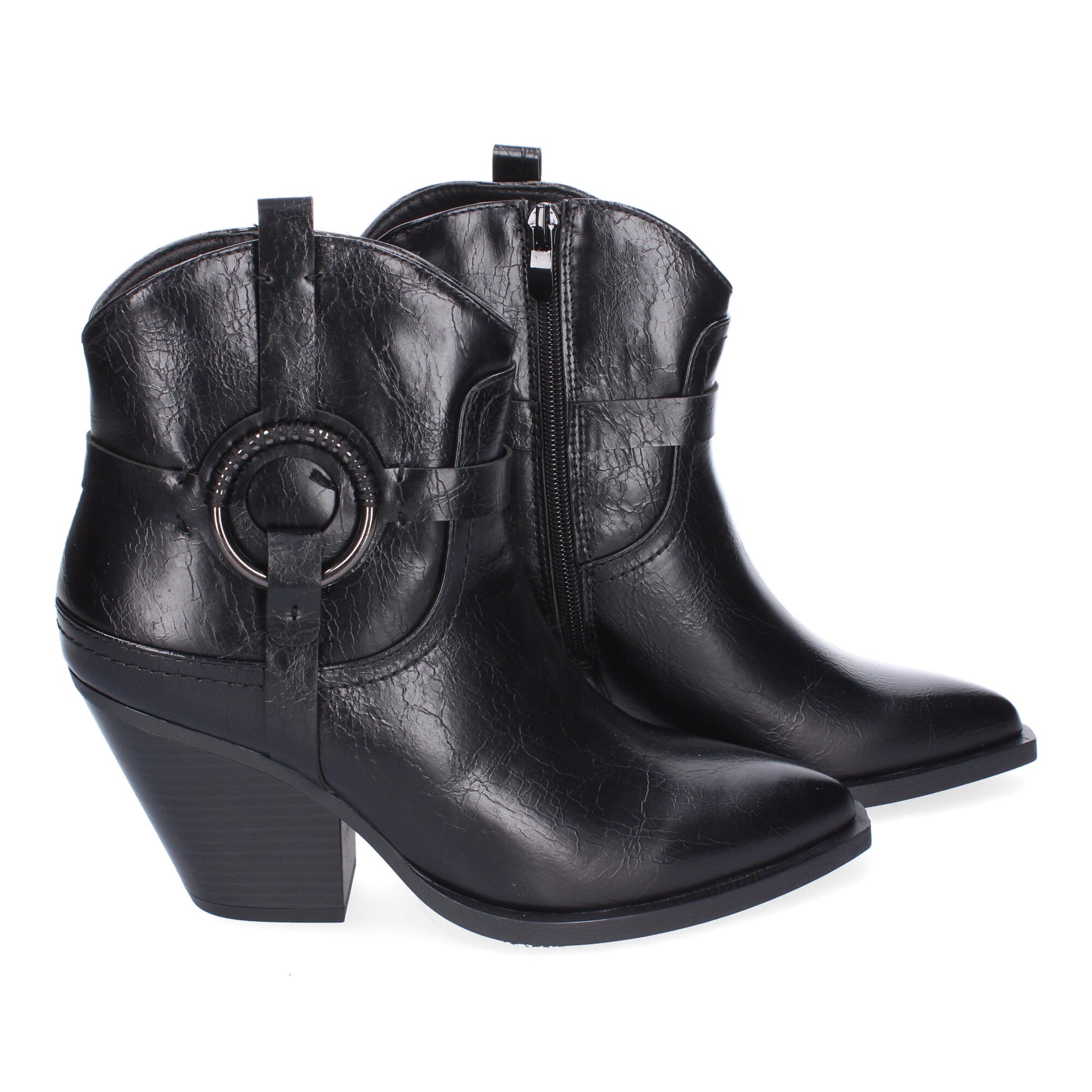 botín Cowboy para Mujer Comodos y Elegantes diseño Moderno Adorno metálico en la caña y Cierre de Cremallera.
