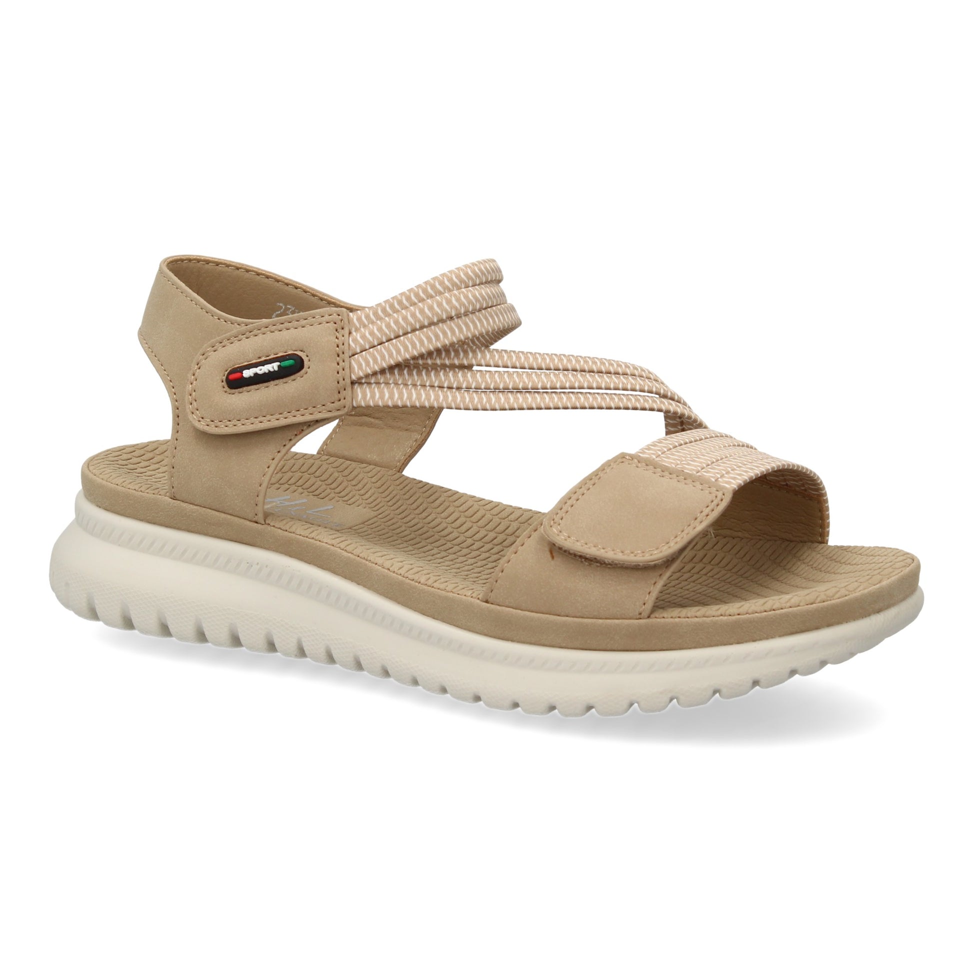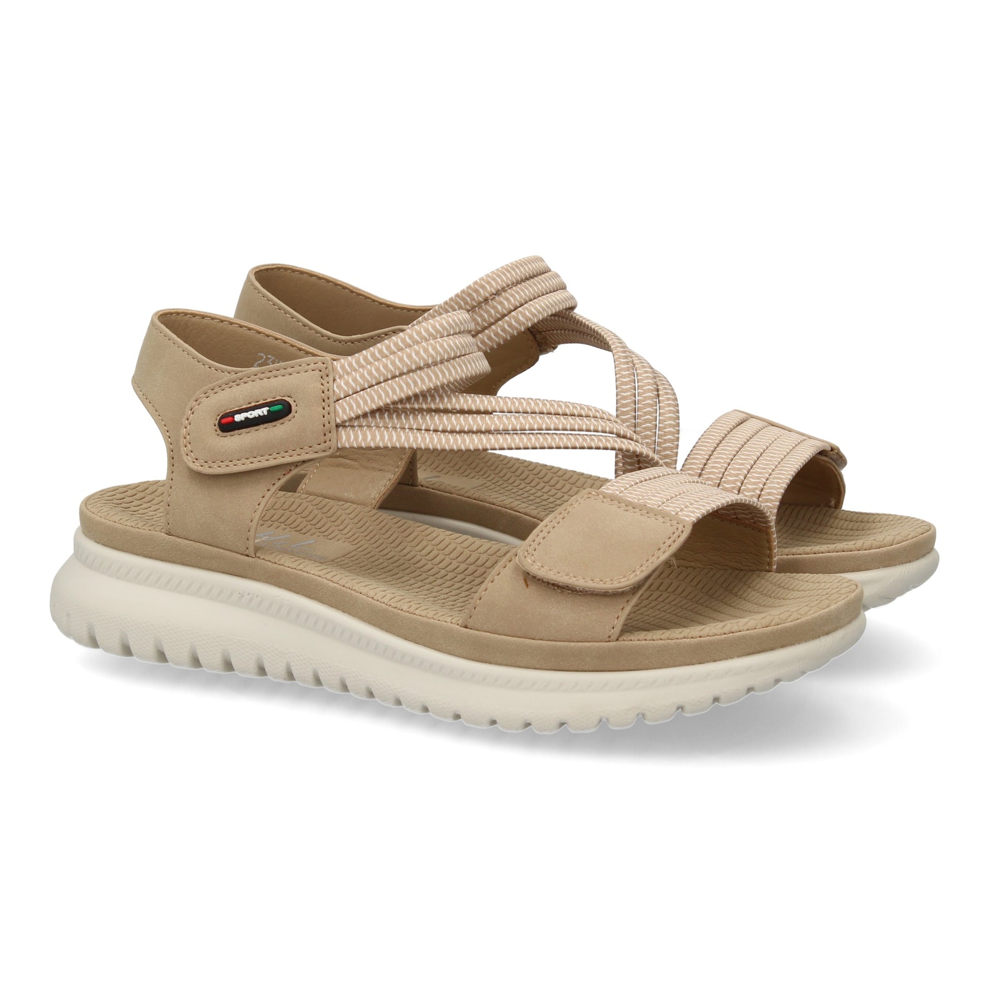 Sandalia plana de mujer diseño moderno y ligero con doble cierre de velcro y tiras elasticas para mayor comodidad. ideales para primavera verano.
