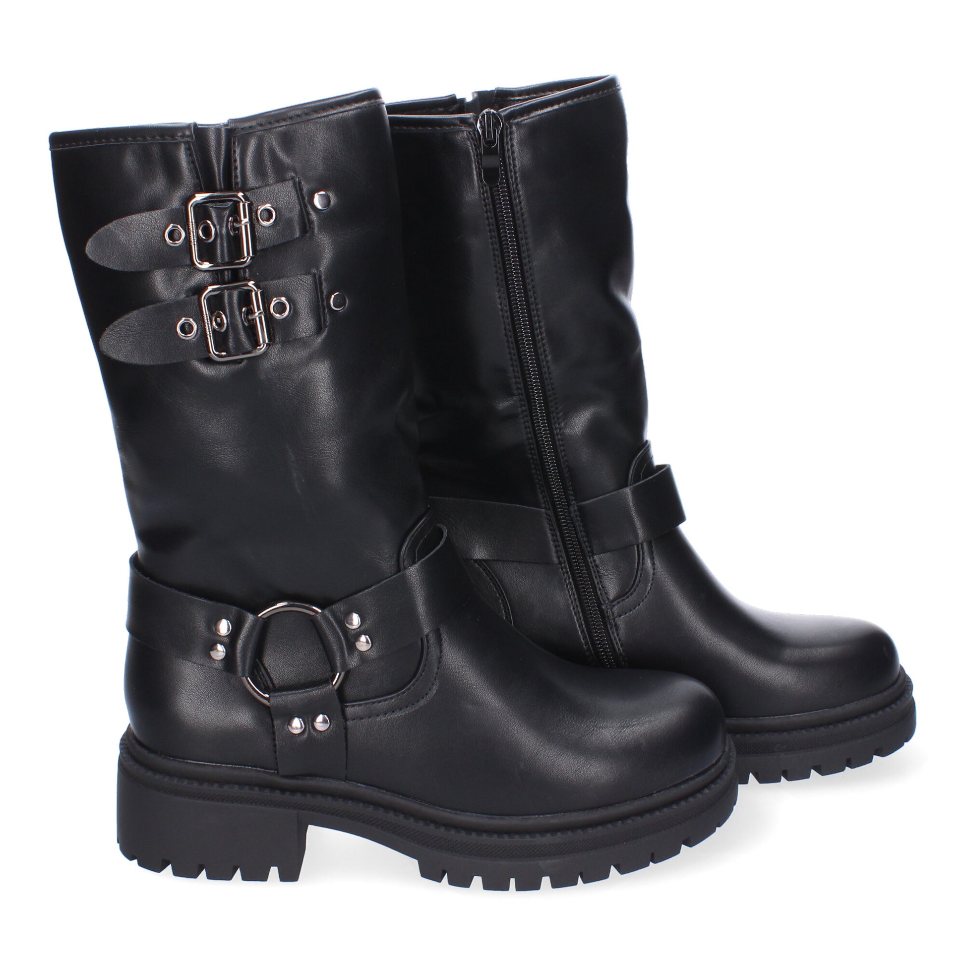 Botas de tacón para Mujer Estilo Motero Comodos y Elegantes Detalles de Hebillas metálicas Ideales para otoño-Invierno.