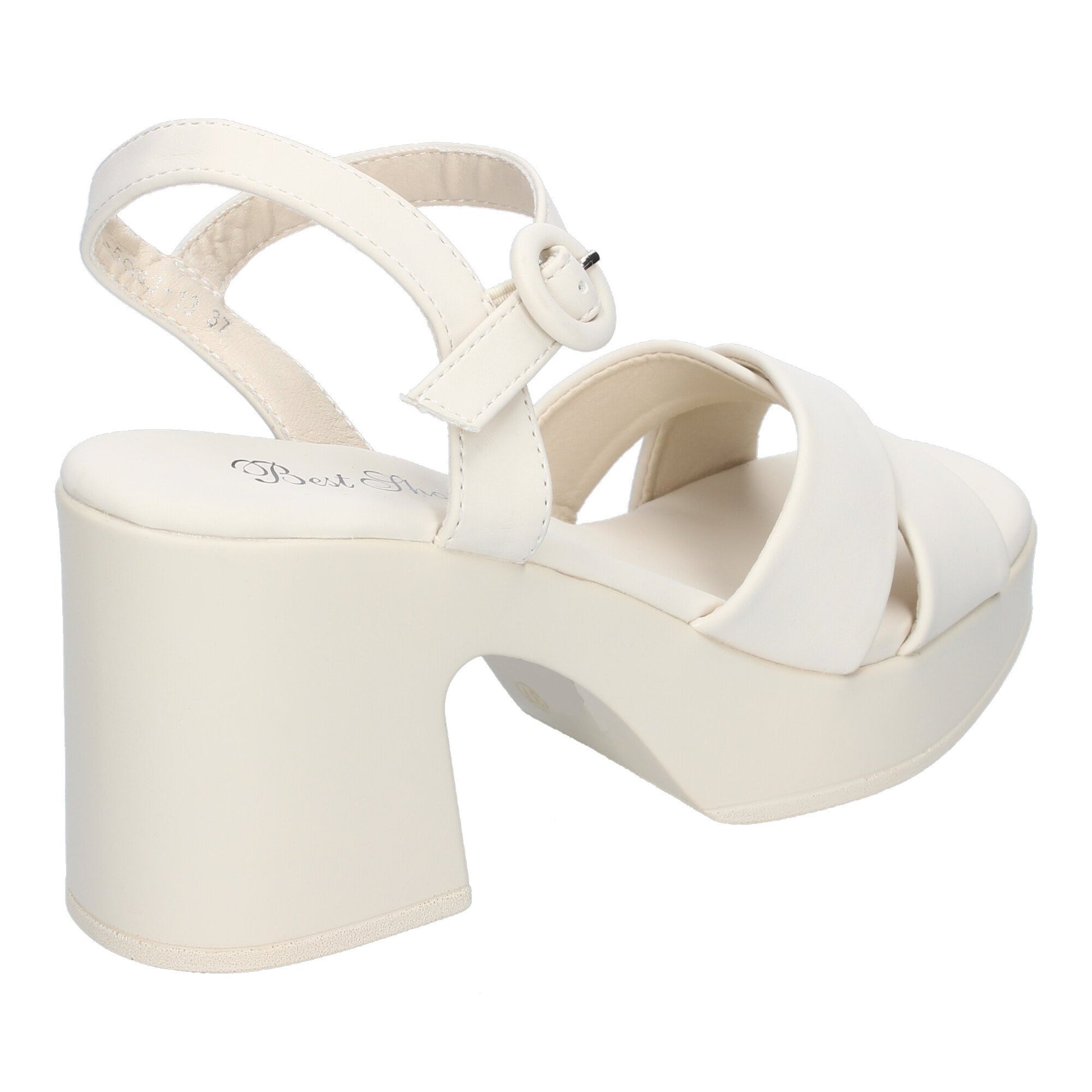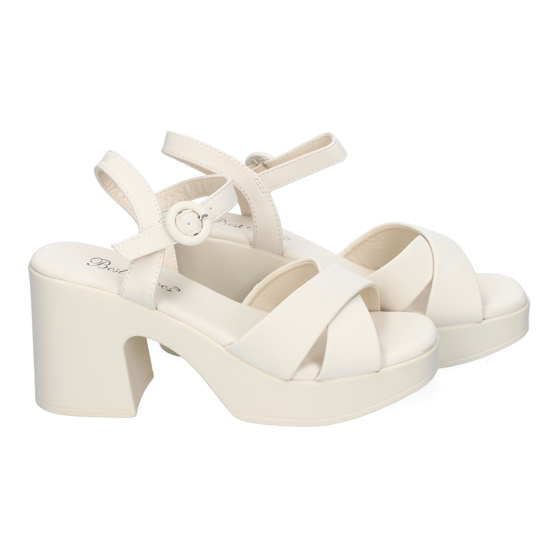 Sandalia de tacón para Mujer Comodas y Elegantes diseño Moderno con Tiras Cruzadas en la Pala con Cierre de Hebilla Ideales para Primavera-Verano.