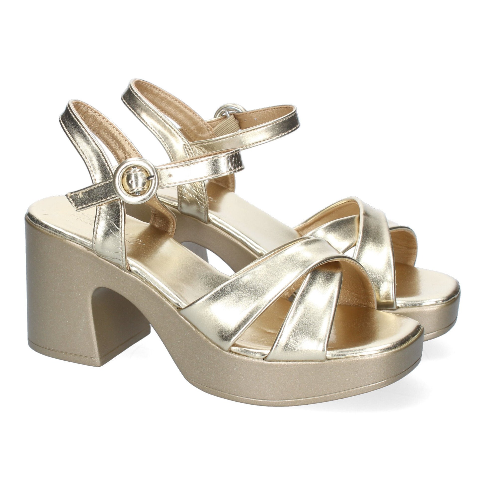 Sandalia de tacón para Mujer Comodas y Elegantes diseño Moderno con Tiras Cruzadas en la Pala con Cierre de Hebilla Ideales para Primavera-Verano.