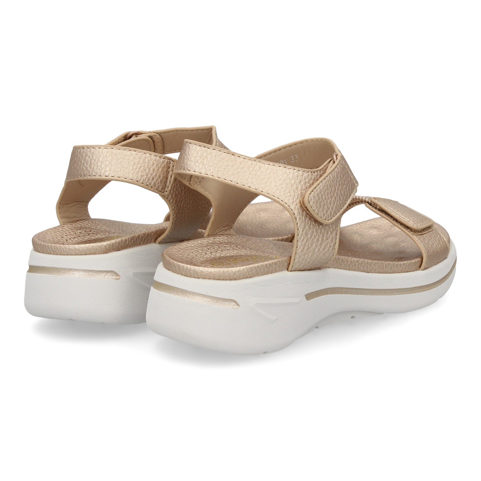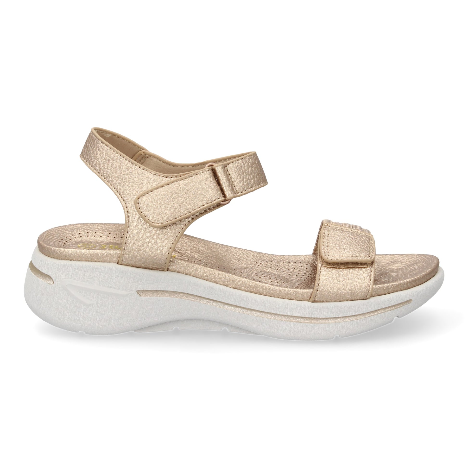 Sandalia plana de mujer diseño moderno ligero y comodo con doble cierre de velcro y tiras elasticas en la pala ideales para primavera verano.