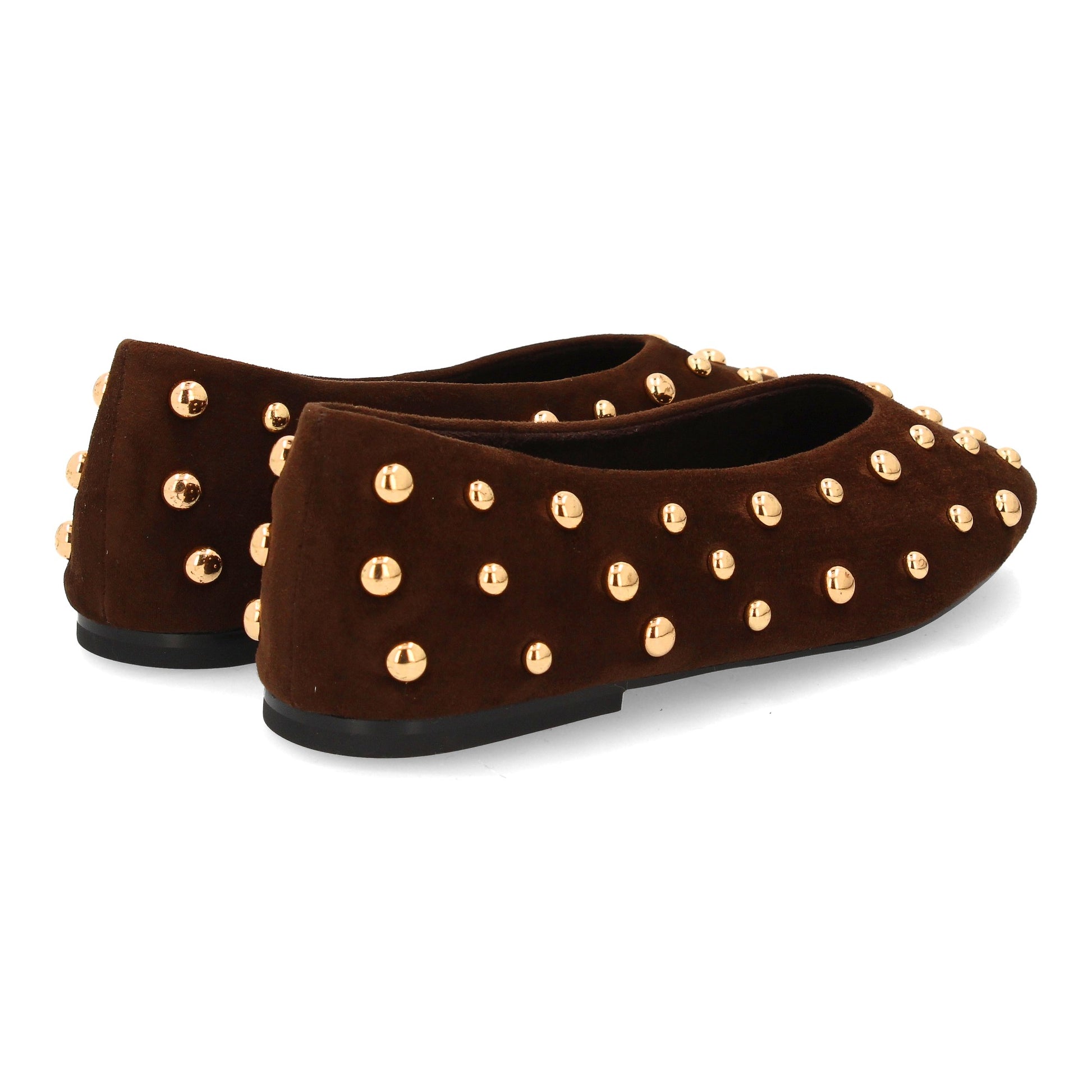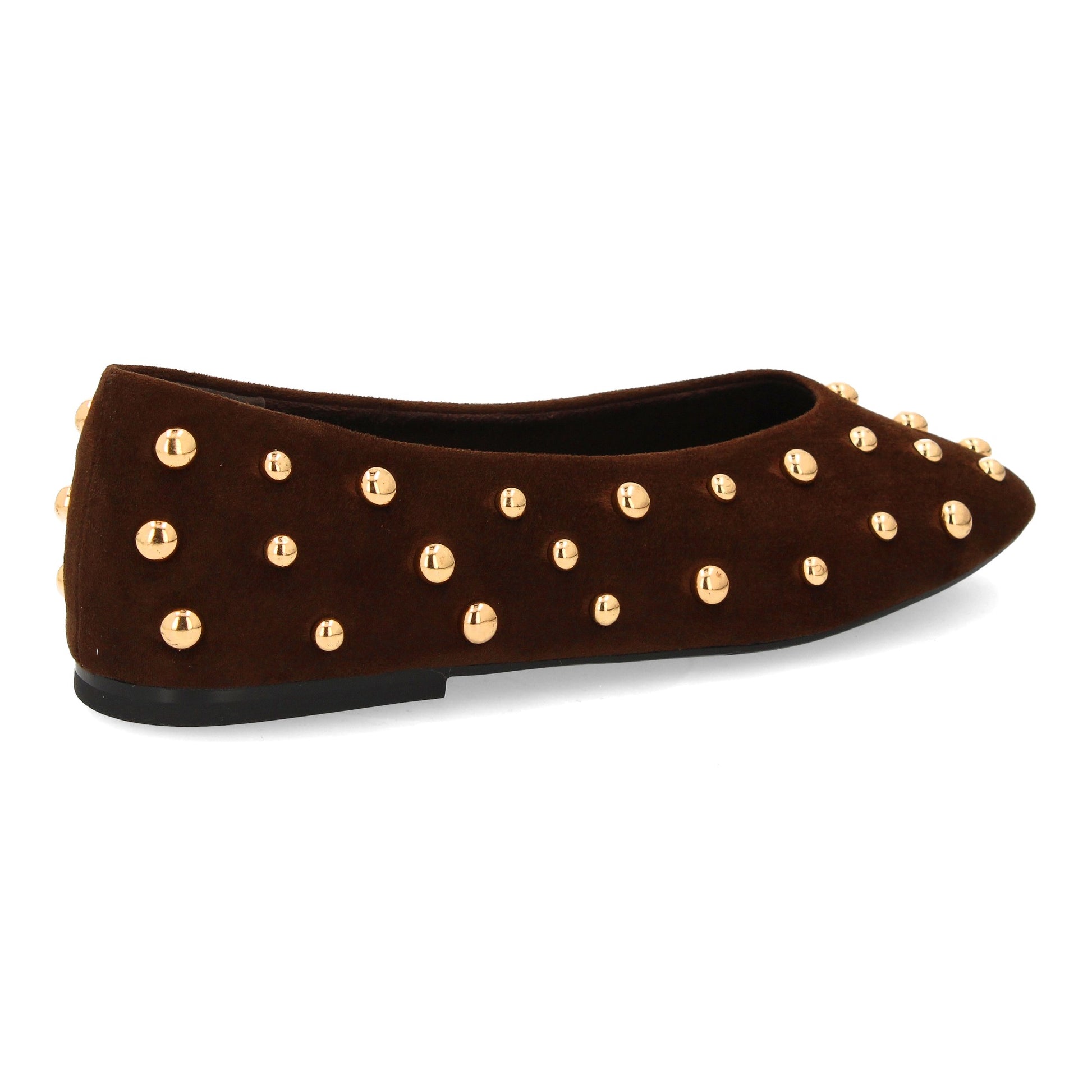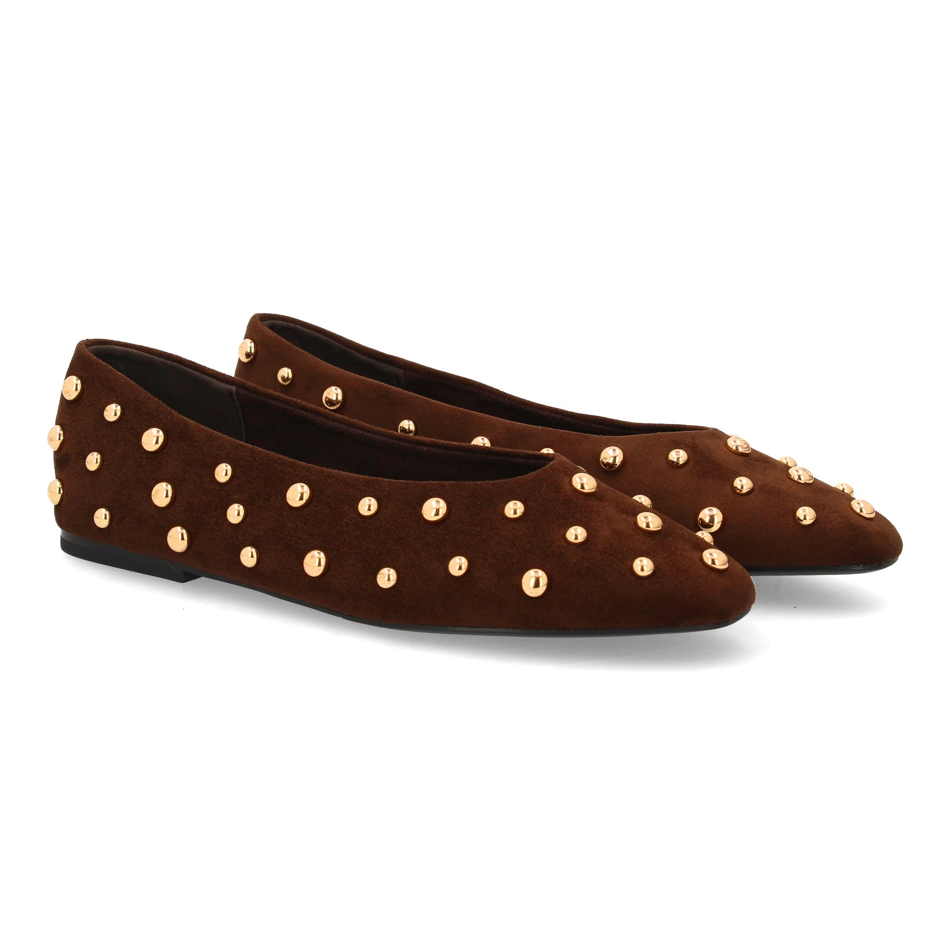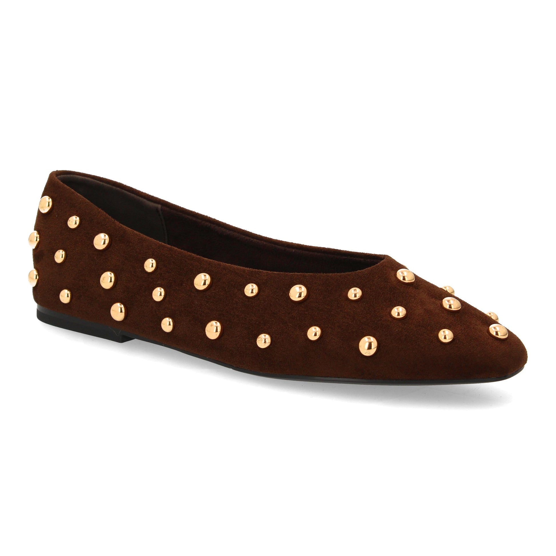 Bailarina elegante con tachuelas metálicas diseño moderno. Su punta fina y suela plana garantizan comodidad. Sin cierre ideal para mujer temporada otoño Invierno.