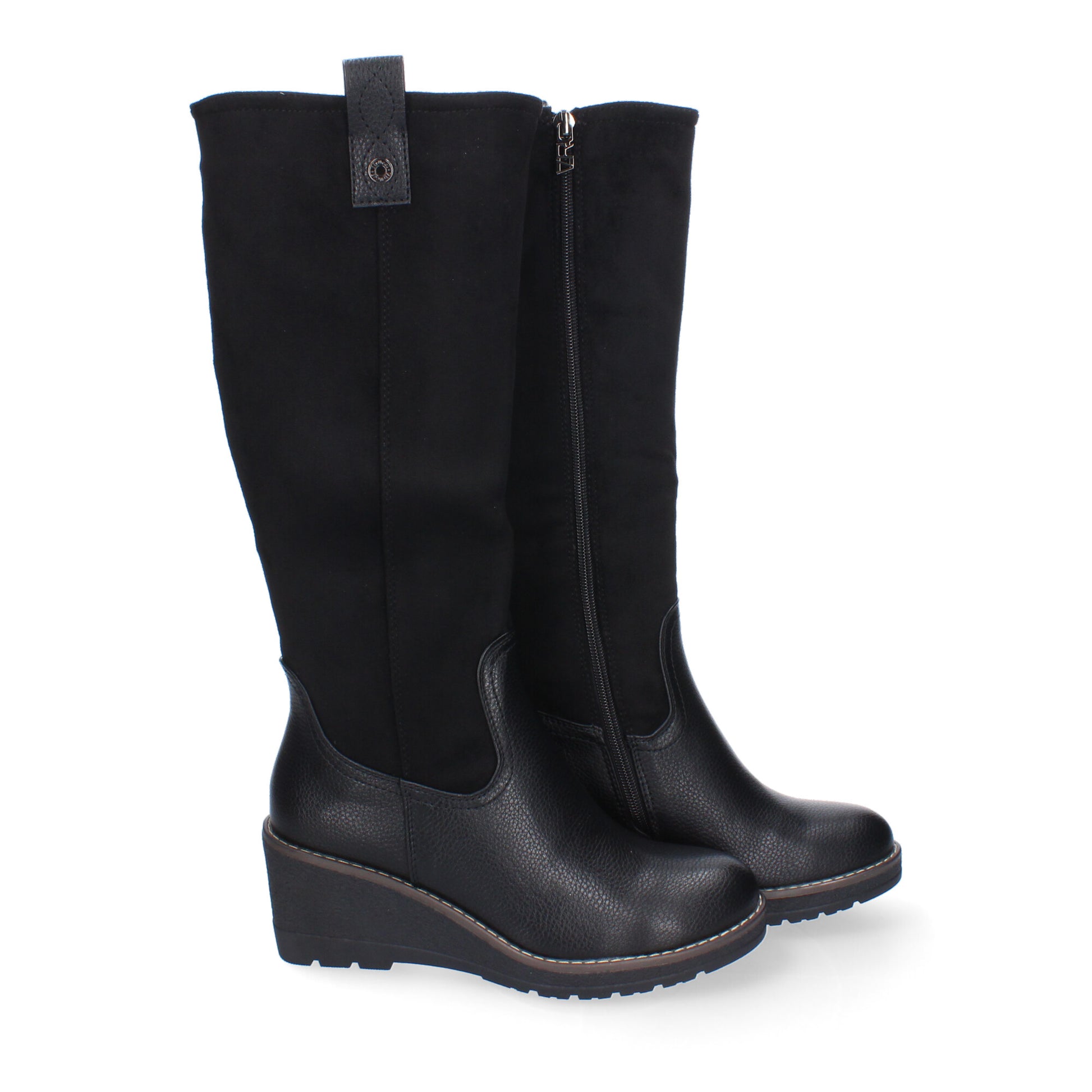 Botas de cuña para Mujer Elegantes y Comodas de caña Alta Puntera Redonda y Cierre de Cremallera Ideales para Oto�o-Invierno.