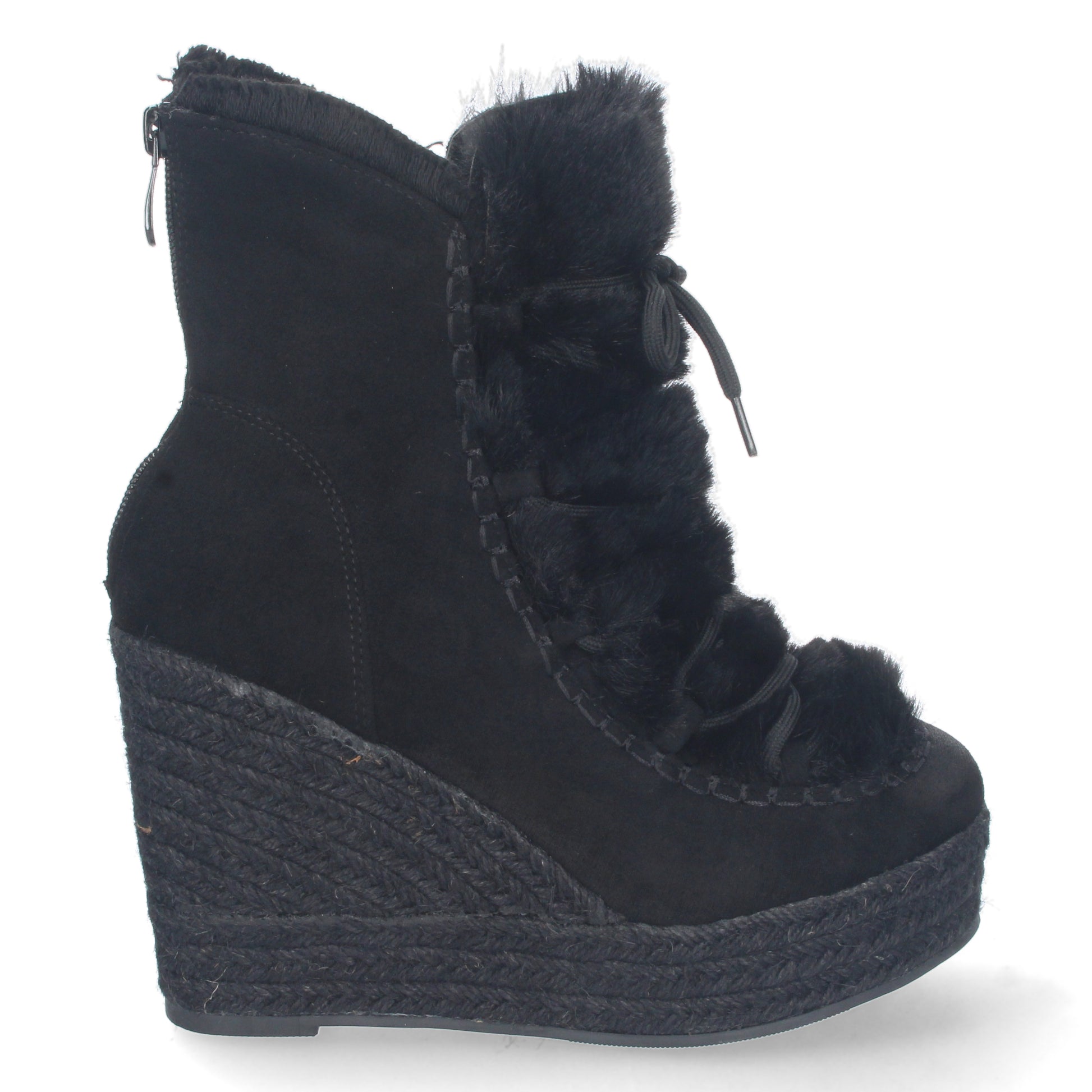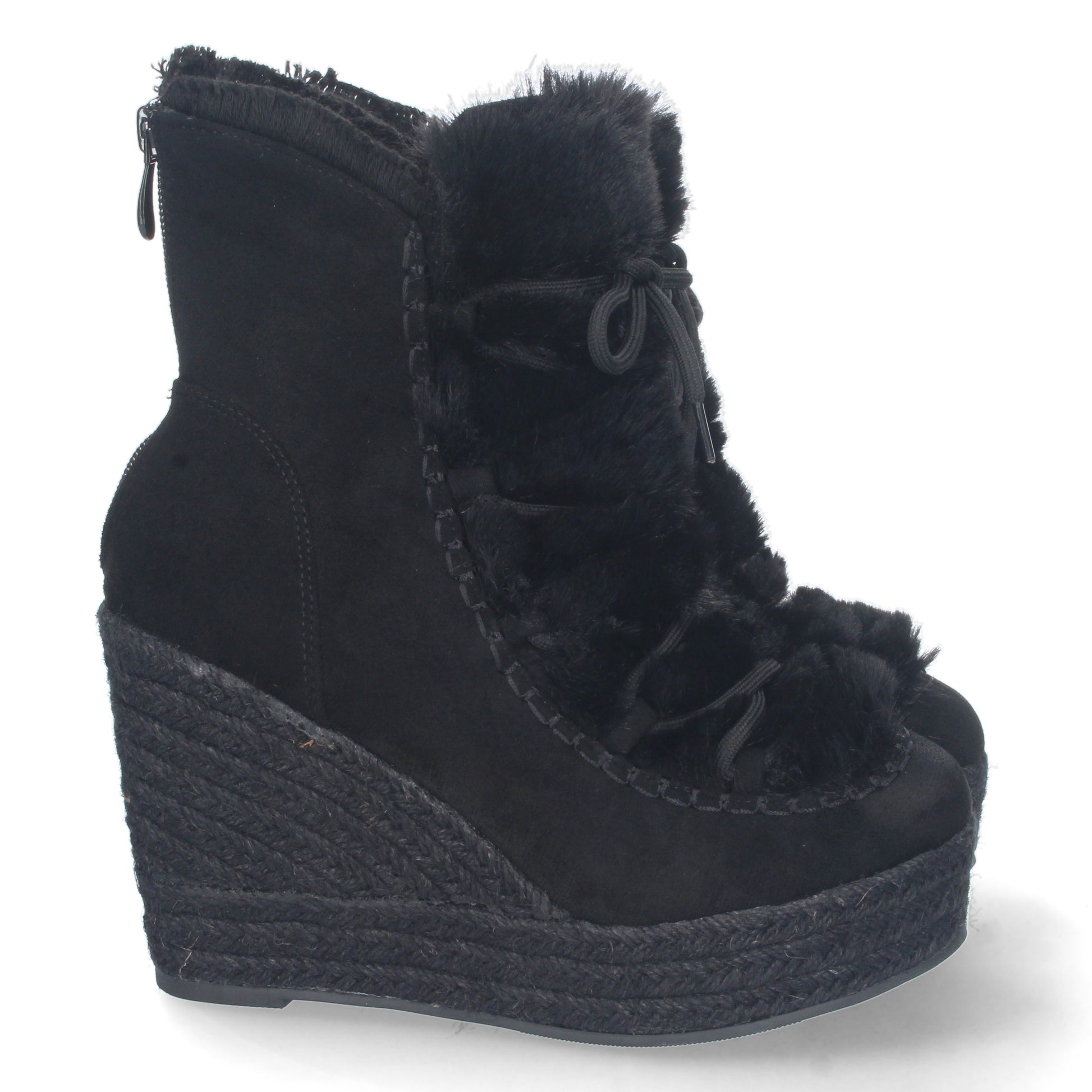 Botin de cuña para Mujer Forrado de Yute Estampado Liso Pelo en el Empeine y Cierre de Cremallera otoño Invierno