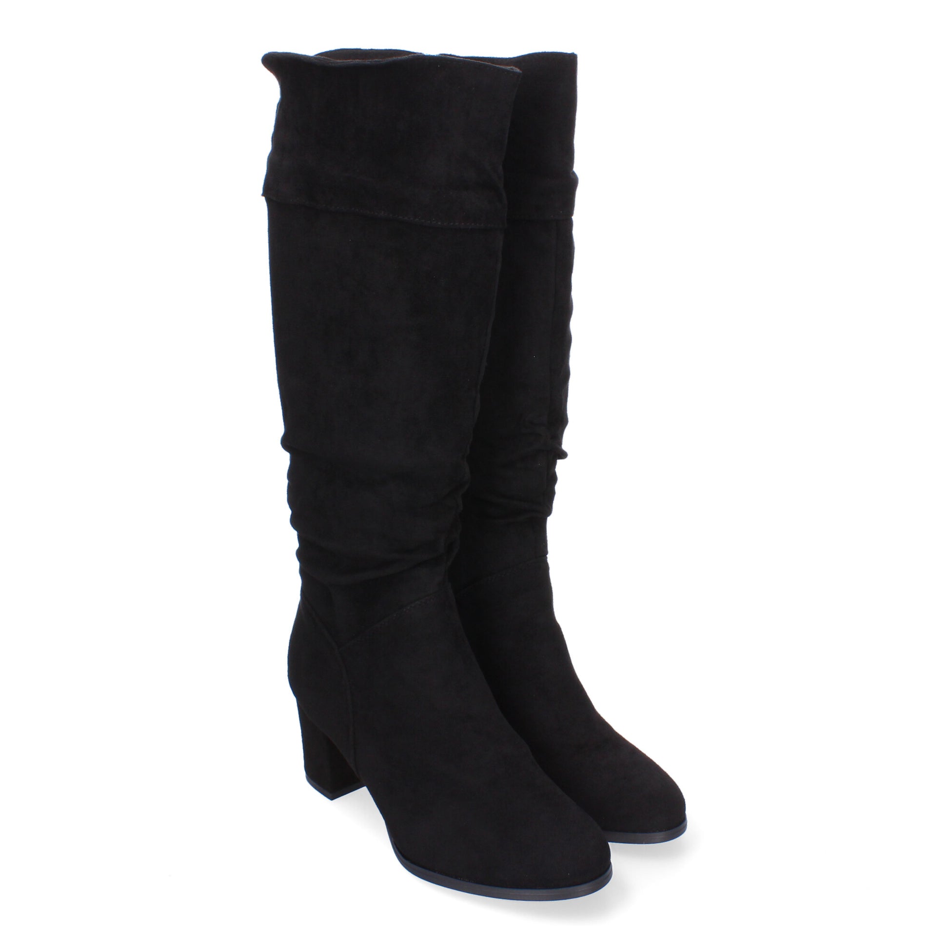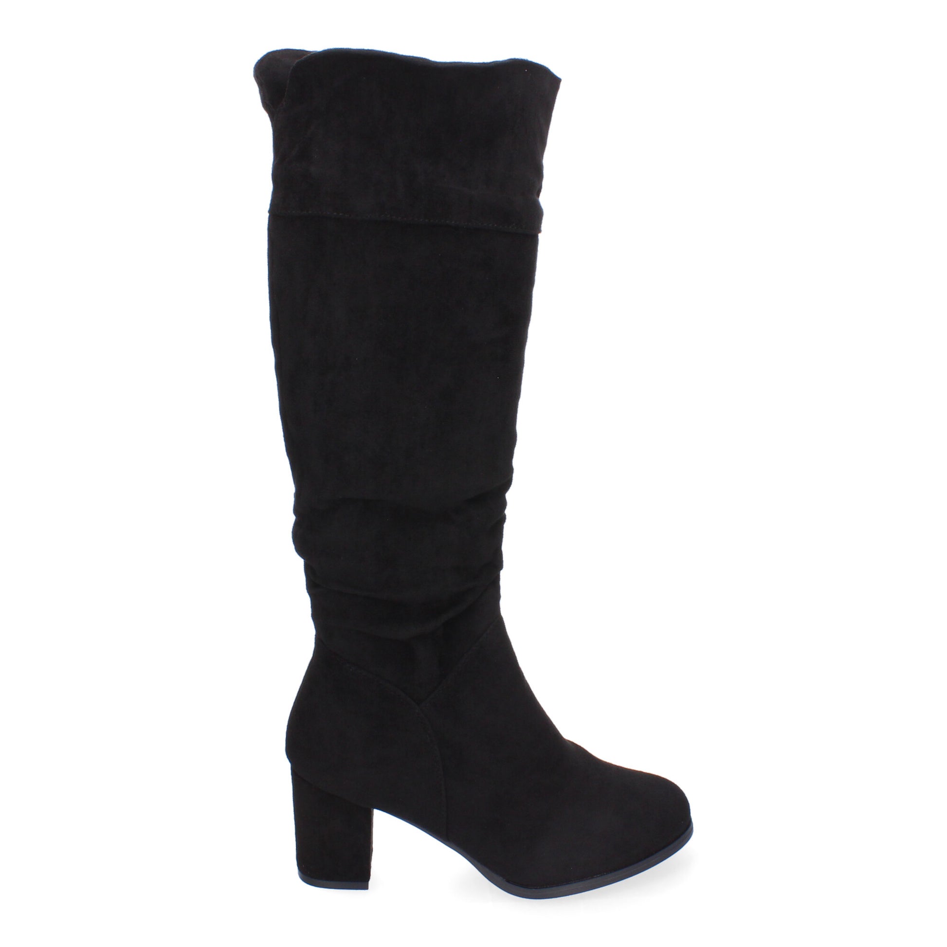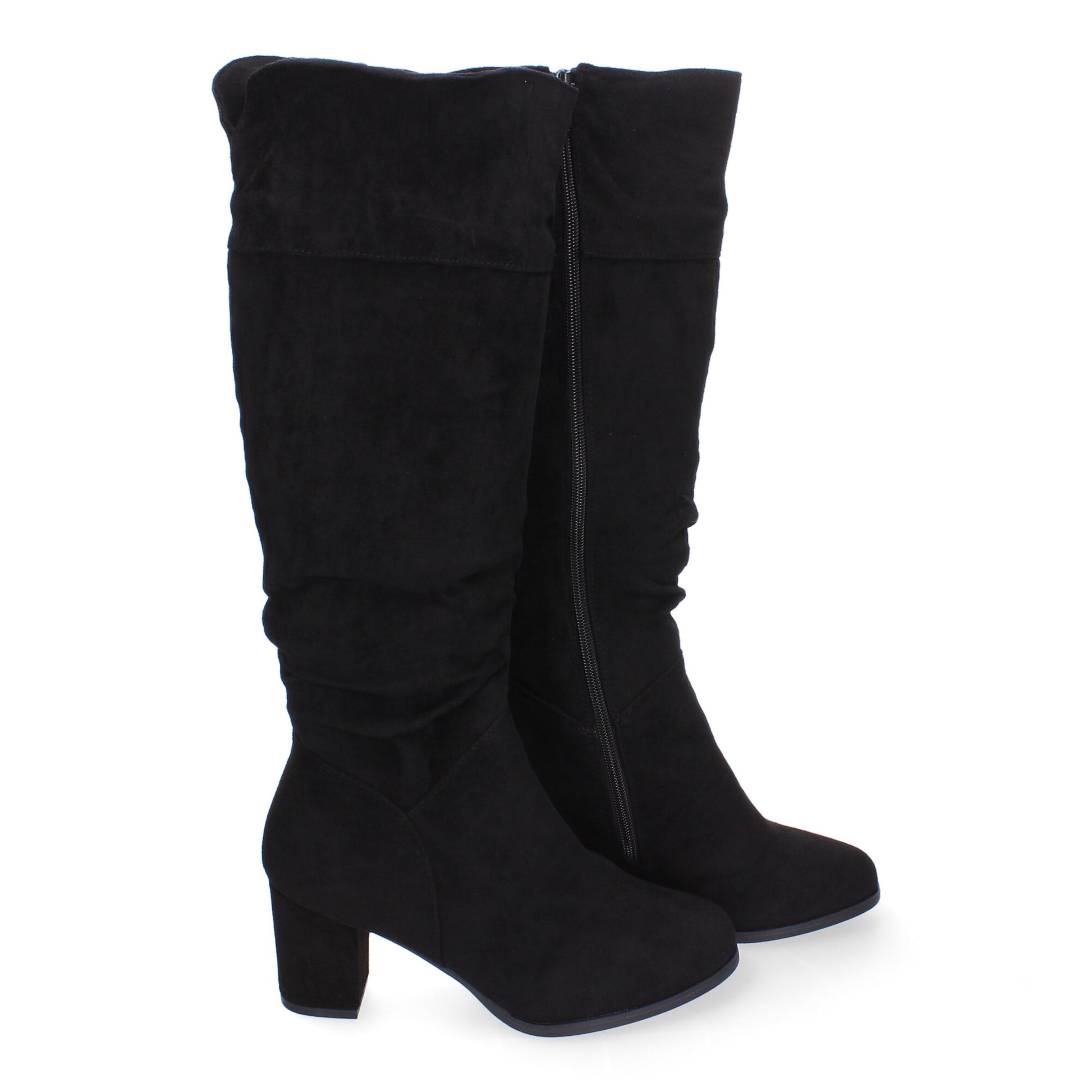 Botas de tacón para Mujer Comodas y Elegantes Detalles de caña Arrugada Puntera Redonda y Cierre de Cremallera Lateral.