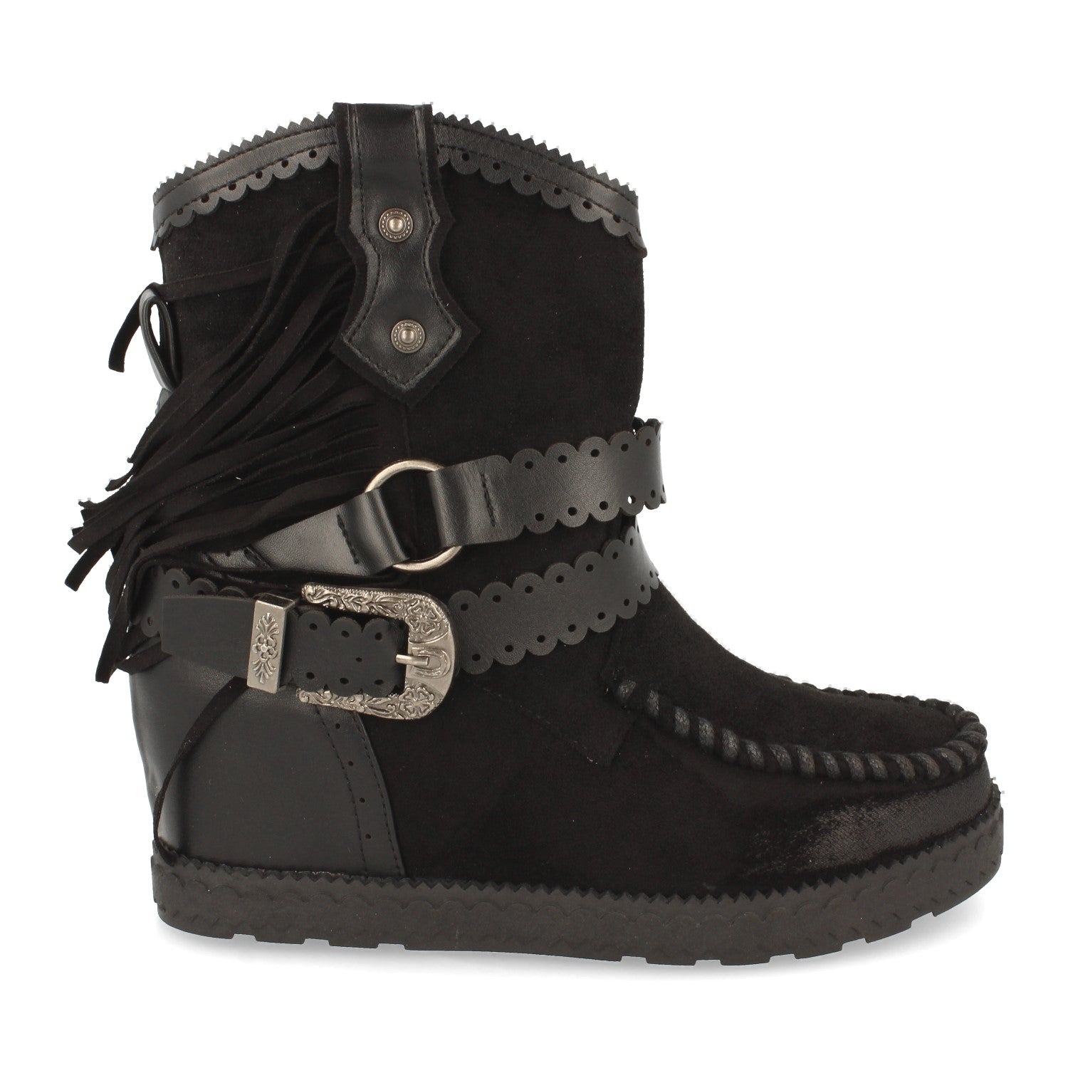Bota de Estilo Indio Correas con Hebilla Flecos en caña cuña Interior Cierre de Cremallera otoño Invierno