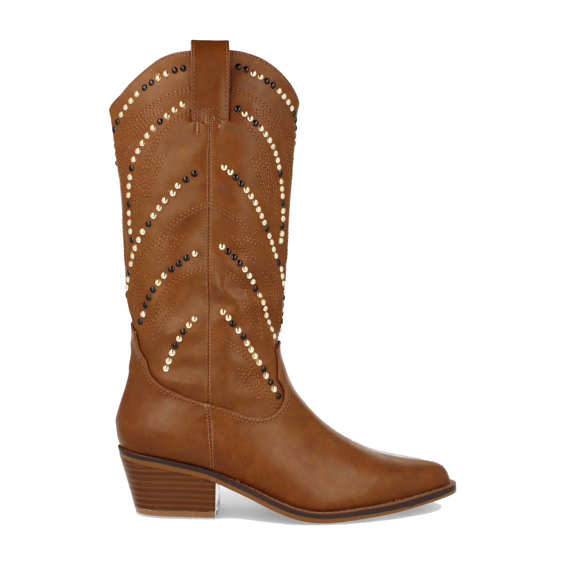 Bota de Mujer con tacón Cubano Detalles de Tachuelas en la caña y Cierre de Cremallera otoño Invierno
