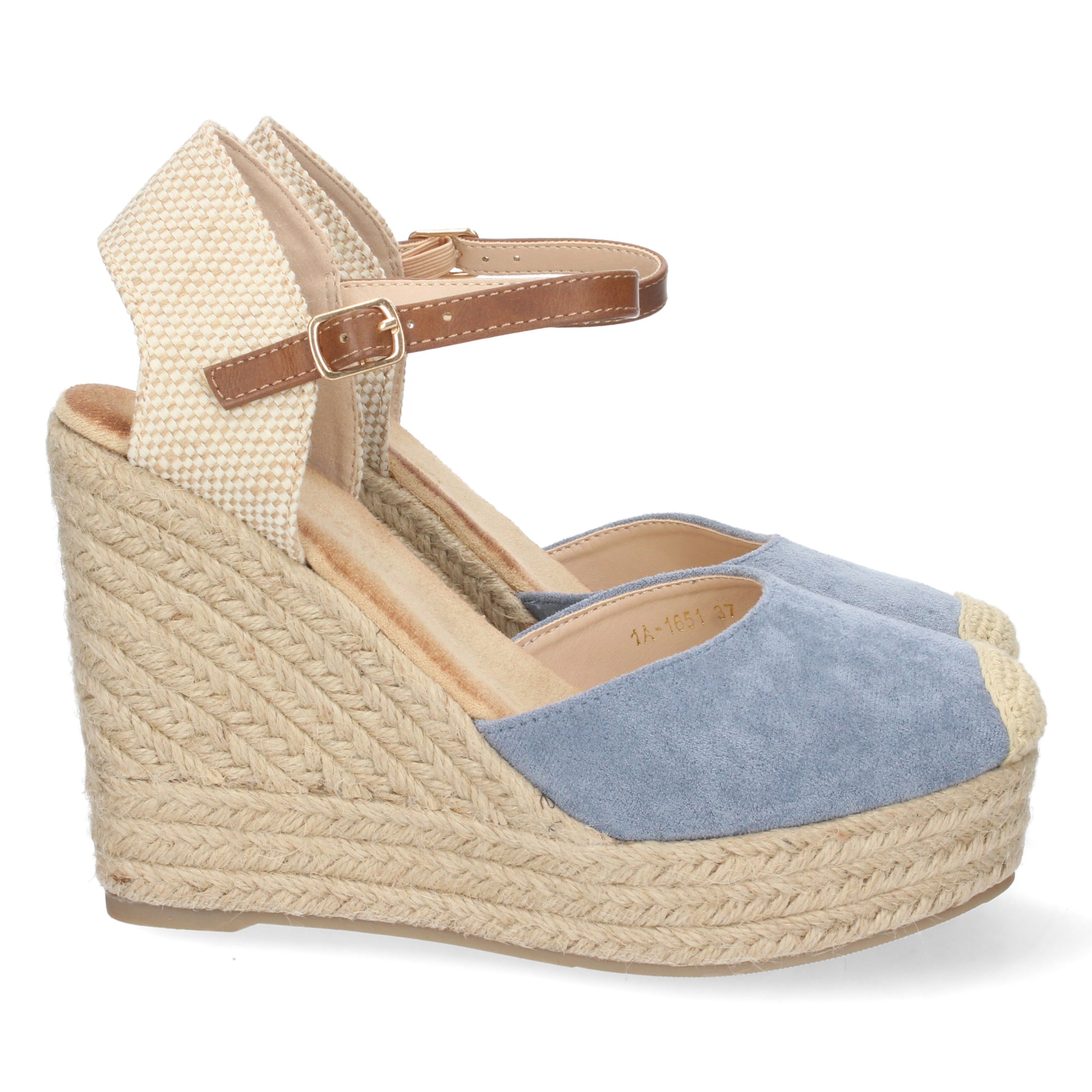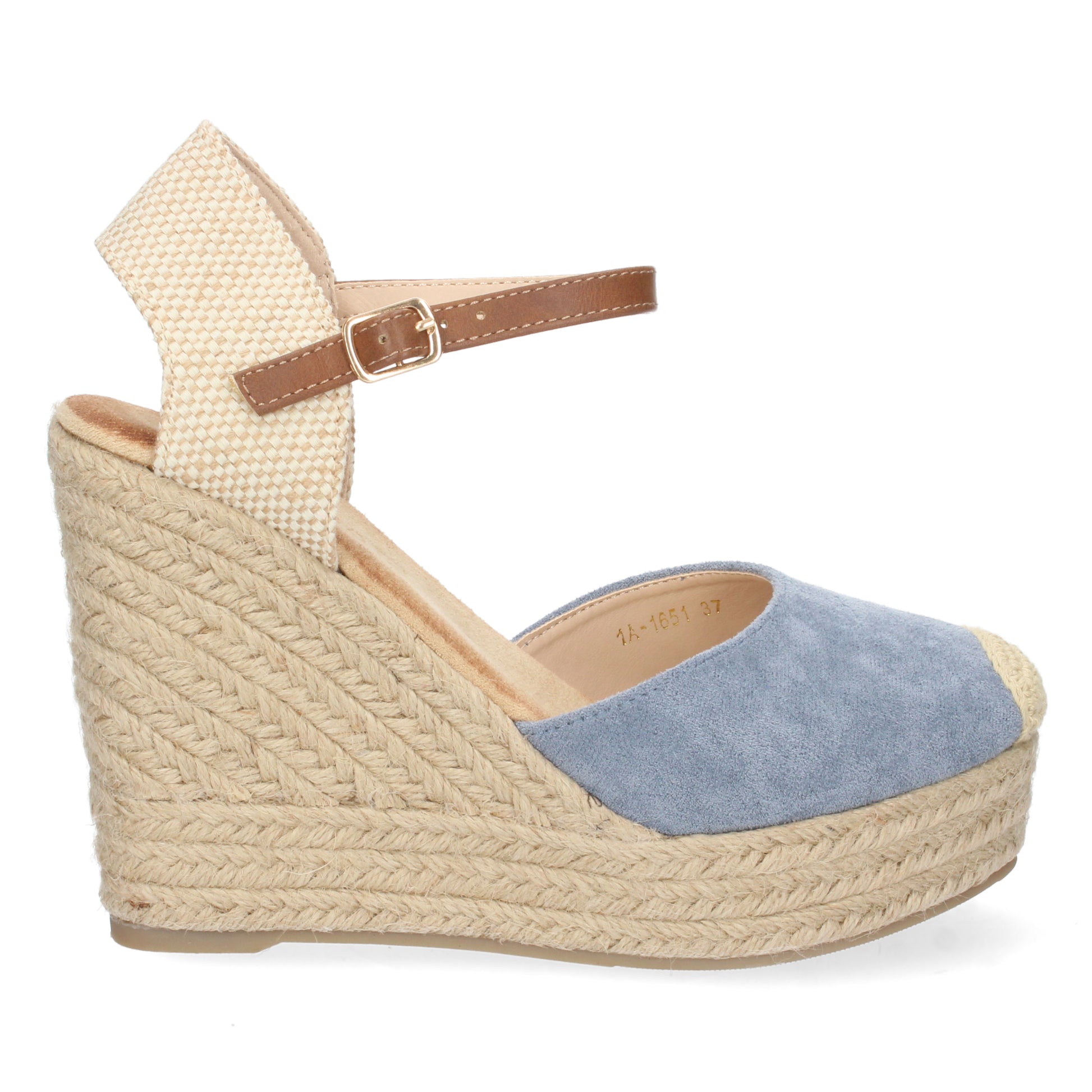 Sandalia de cuña para Mujer Forrada de Yute con Pala Cerrada y Cierre de Hebilla Primavera Verano