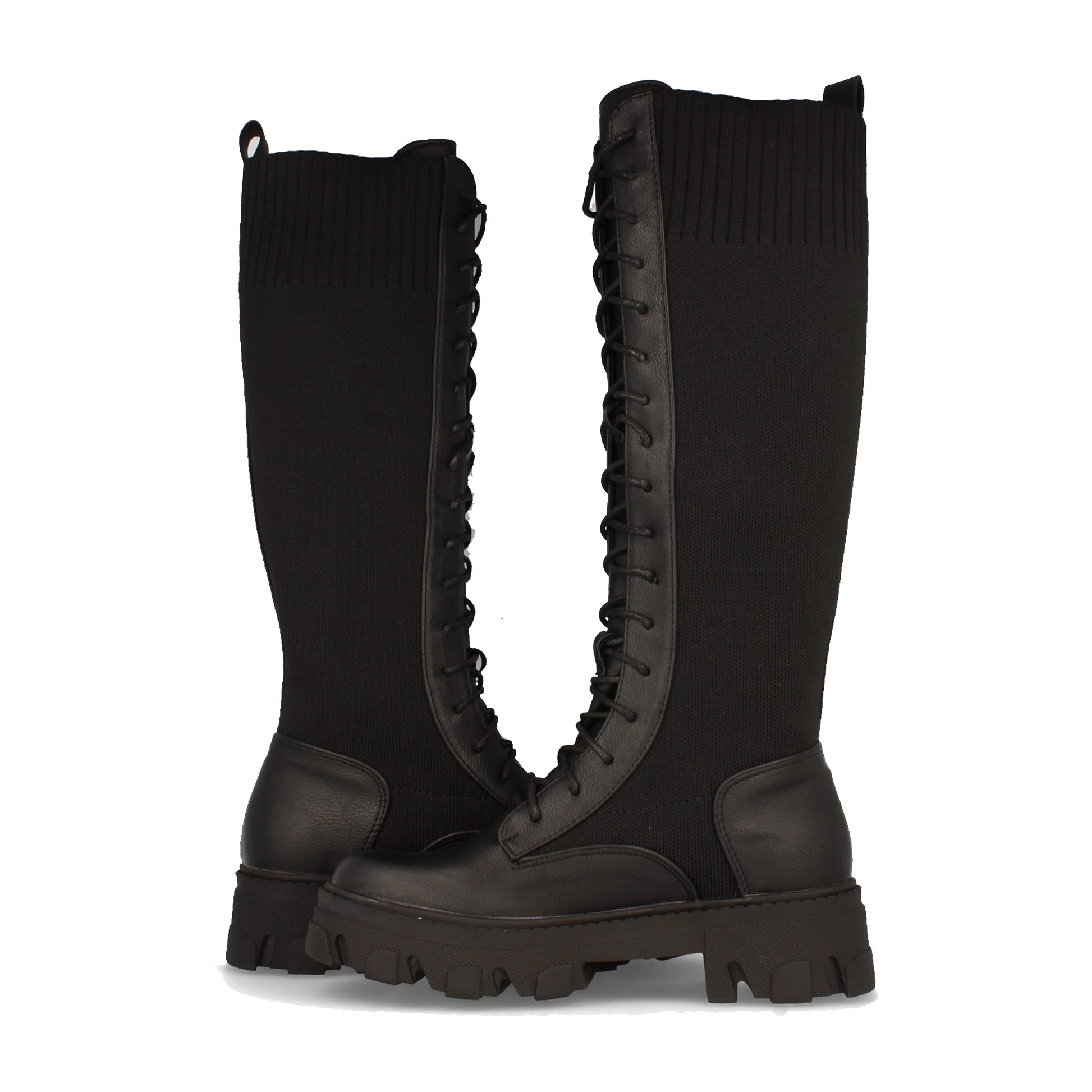 Bota de Plataforma para Mujer con elásticoen el Gemelo y Cierre de Cordones otoño Invierno