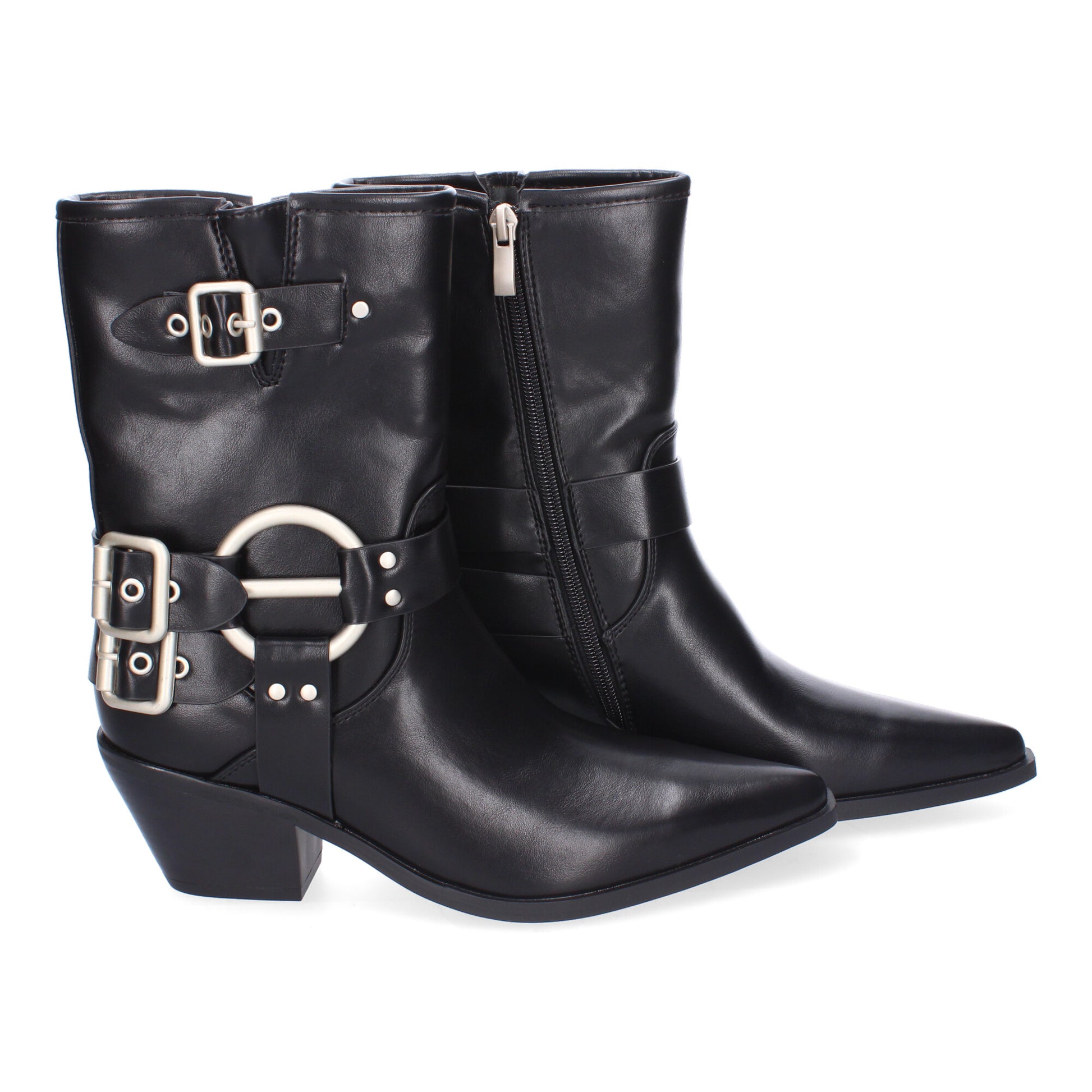 Botines de Mujer Estilo Motero Comodos y Elegantes diseño Moderno con Adornos metálicos y Punta Fina.