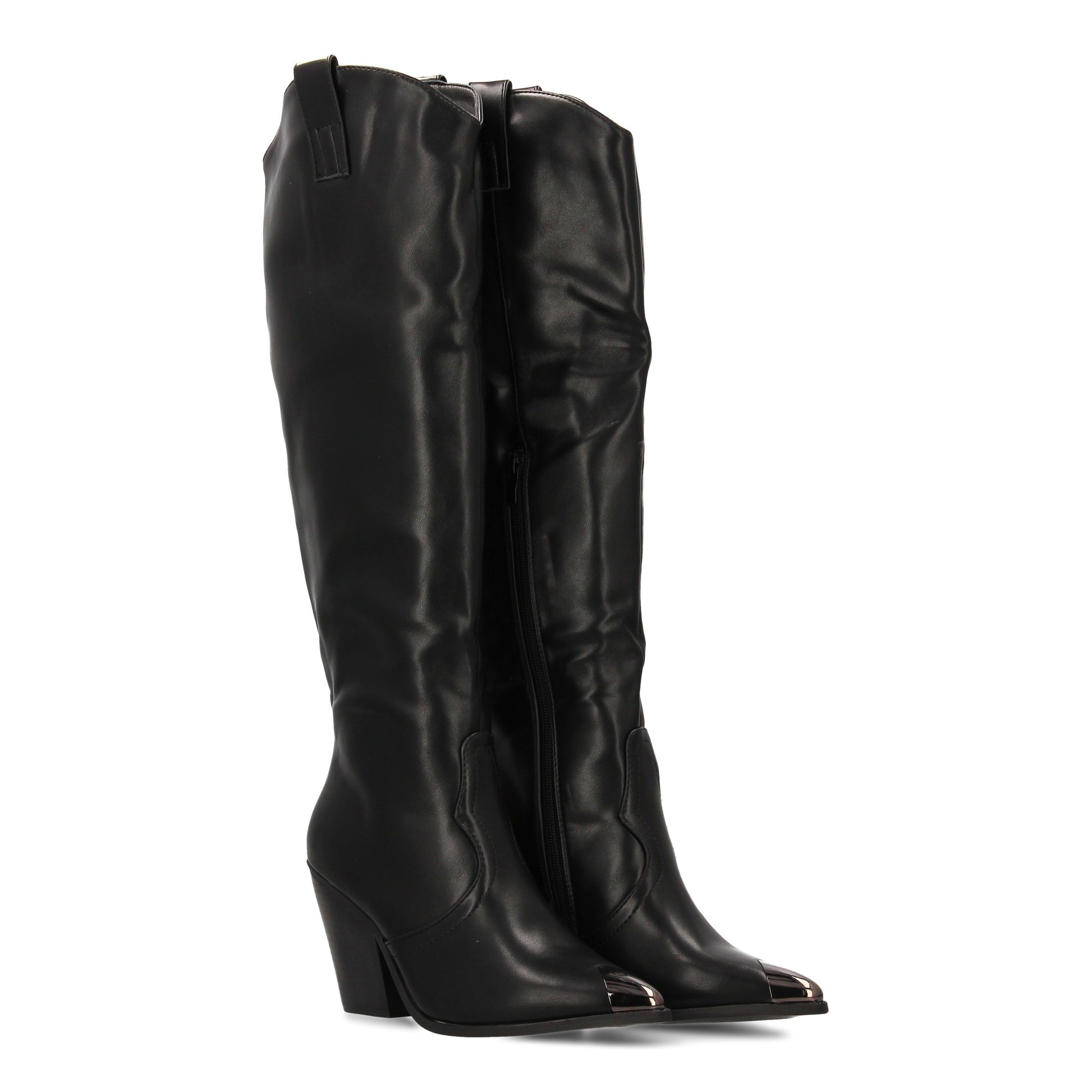 Botas altas con tacón para mujer. Diseño elegante estampado liso punta metálic