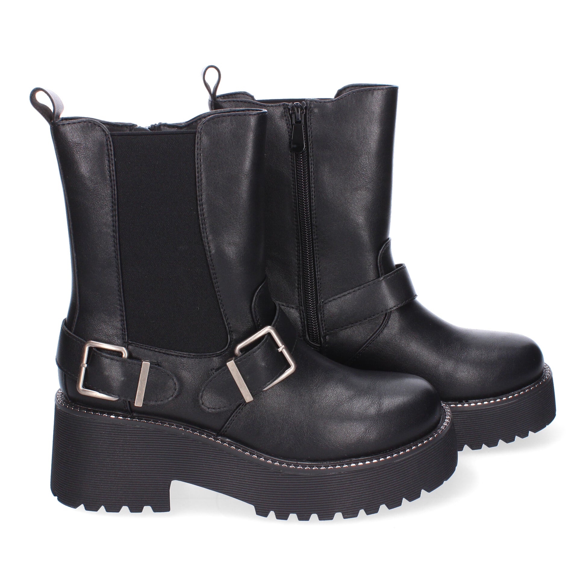Botín de tacón para Mujer Comodos y Elegantes Adorno de Hebilas Material El�stico y diseño Moderno Cierre de Cremallera Lateral.