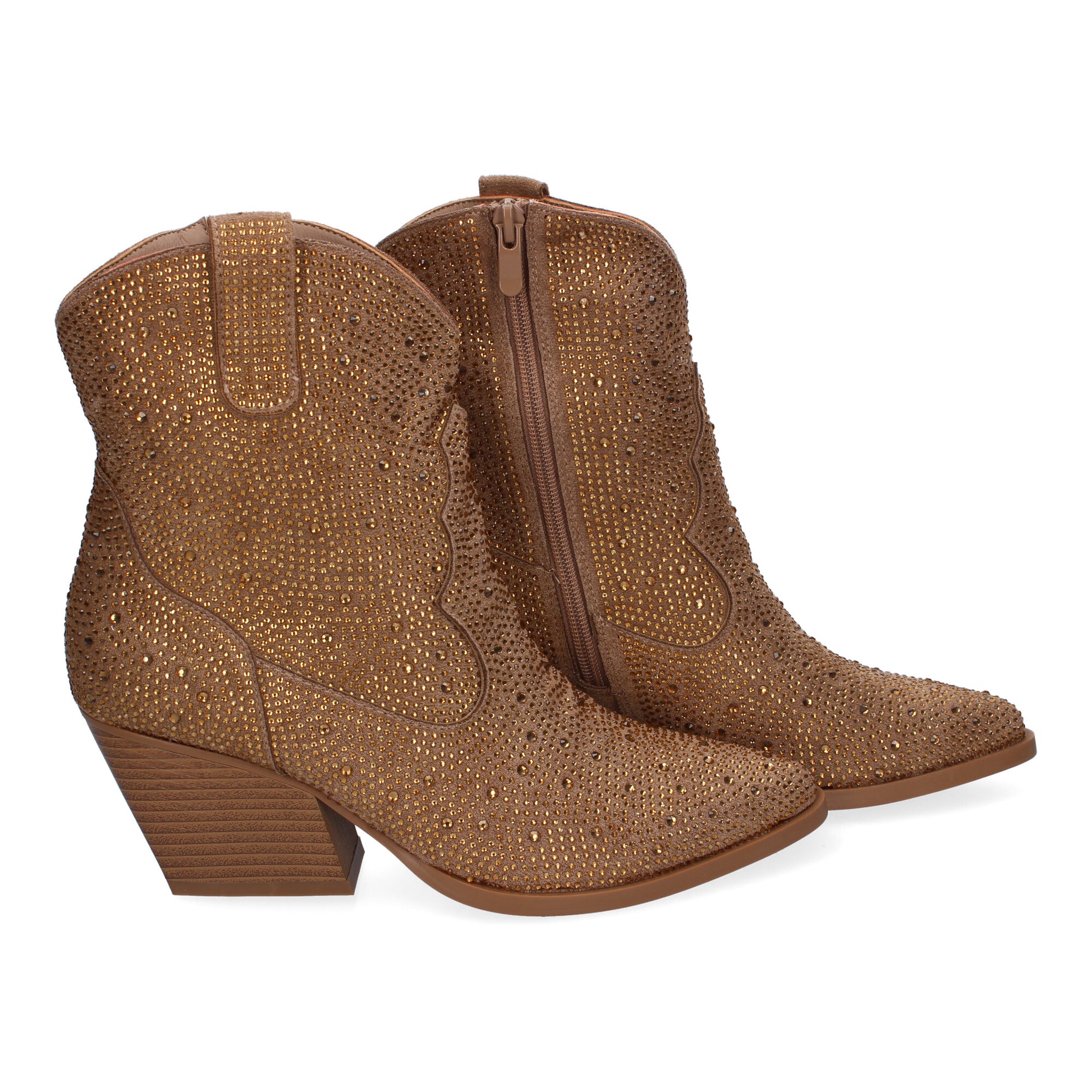 Botines de Tacón Cubano para Mujer Adornos Brilla