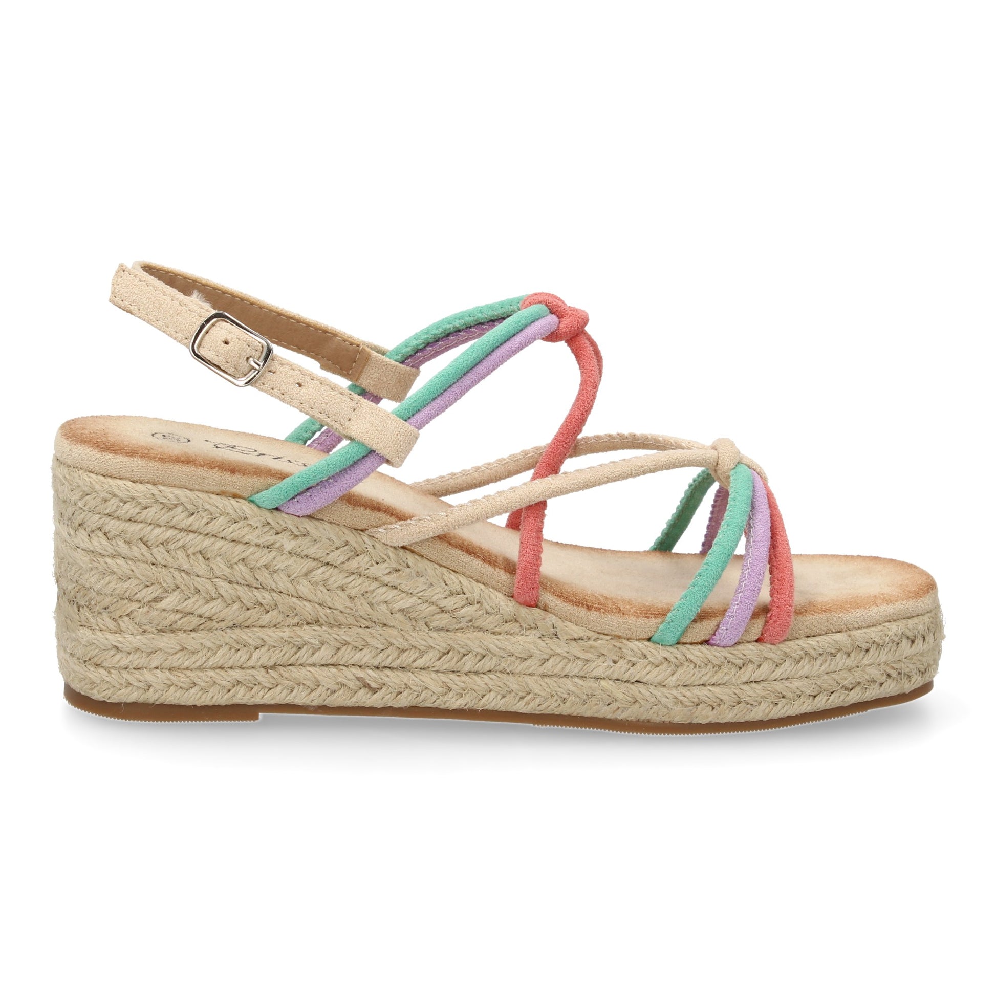 Sandalias de cuña de yute para mujer comodas y elegantes diseño moderno con tiras cruzadas en la pala con cierre de hebilla ideales para primavera-verano.