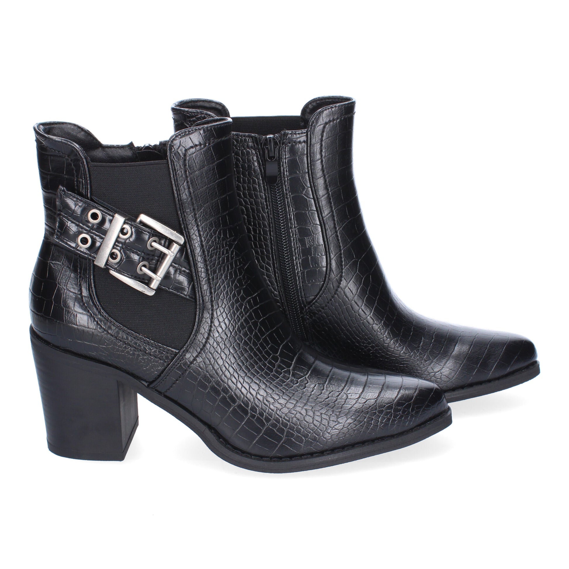 Botín de tacón para Mujer Comodos y Elegantes diseño de Estampado Punta Redonda y Cierre de Cremallera Lateral.