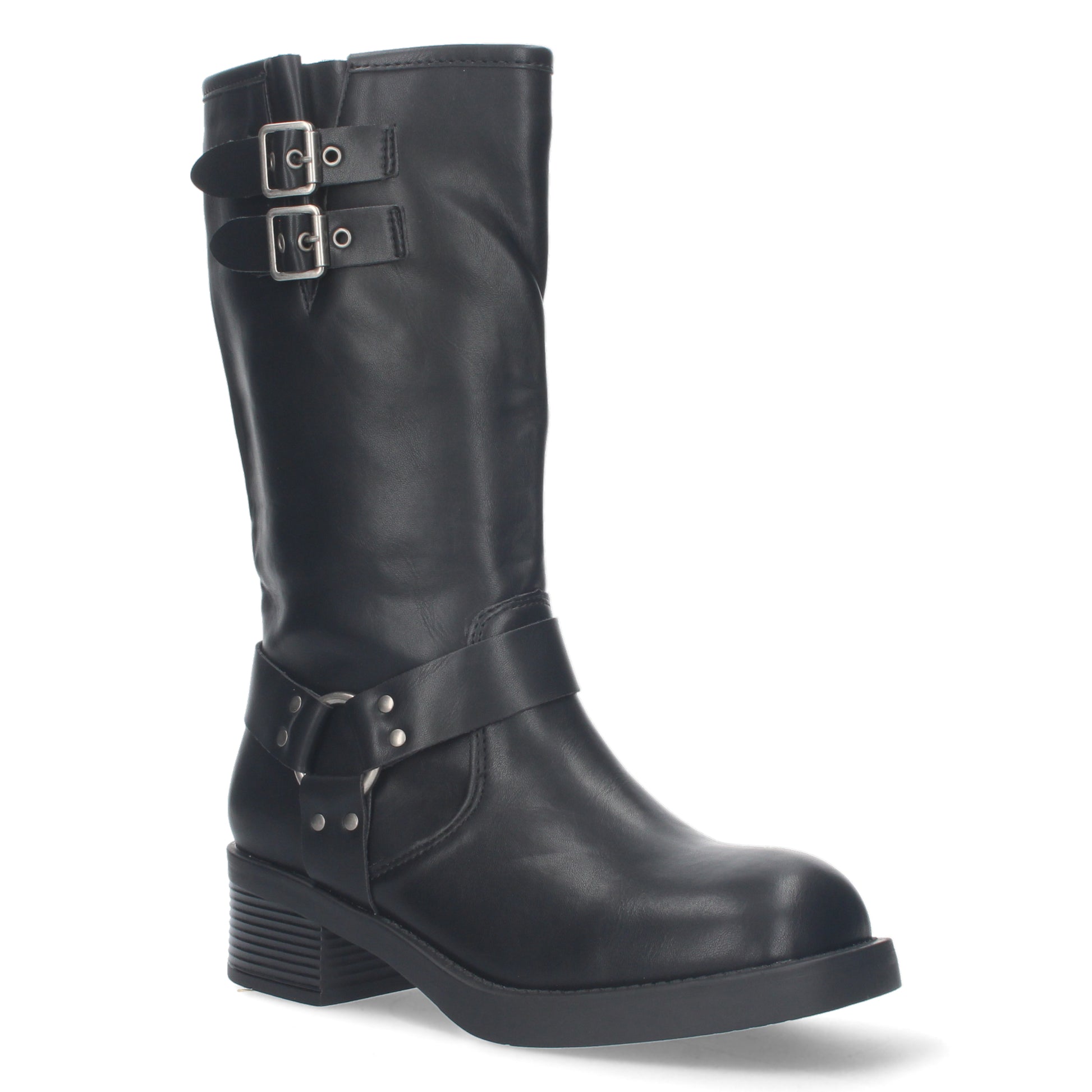 Bota motera para mujer con tacón bajo y cierre de cremallera cómodas para vestir e ir de ruta. caña de 27cm de longitud.