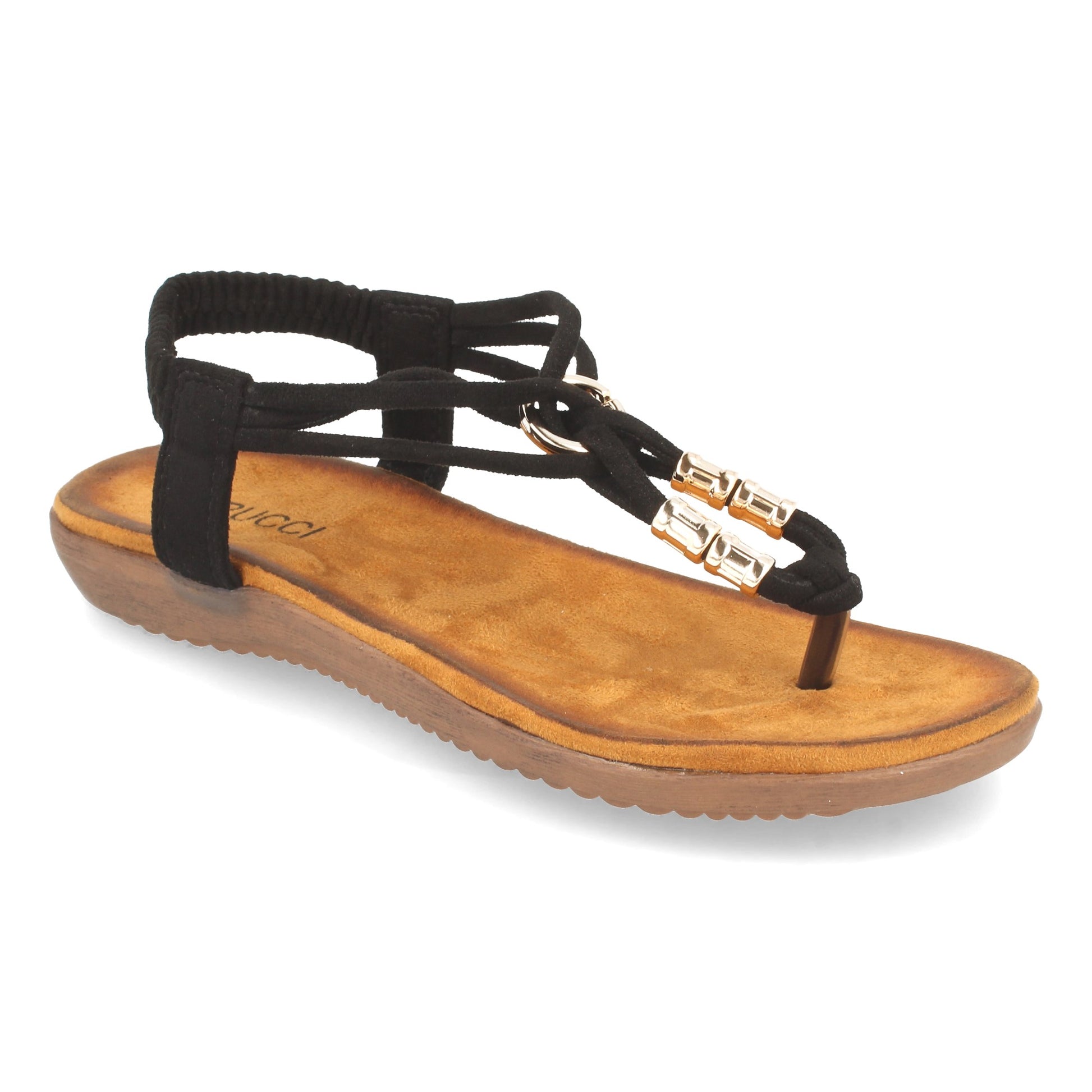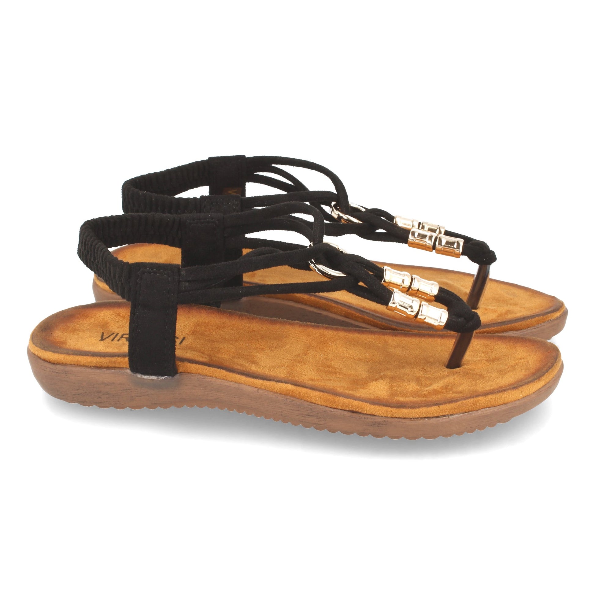Sandalia Plana de Mujer Comodas de Estilo Esclava con Detalle Metalico en el Empeine y Cierre elásticoen el talón Primavera Verano