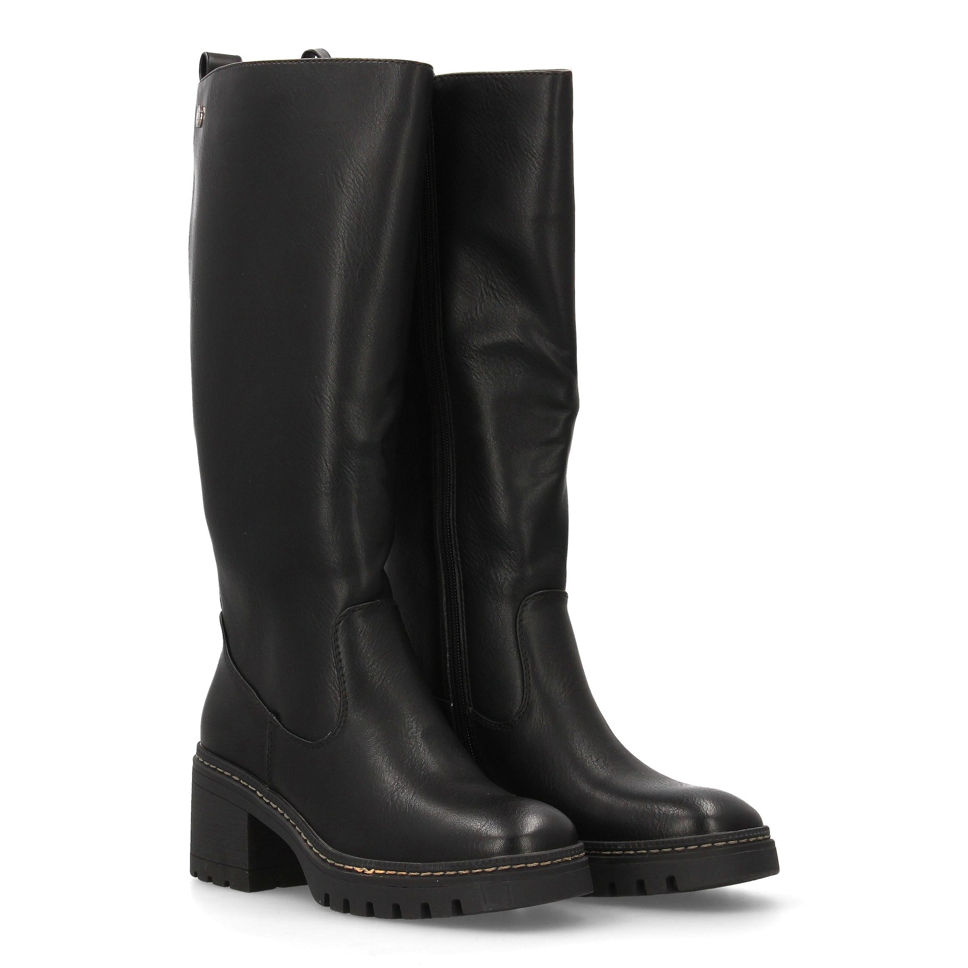 Bota de caña alta para mujer con diseño elegante. Cuenta con tacón ancho y suela dentada. Cierre de Cremallera interior ideal para la temporada de otoño invierno.