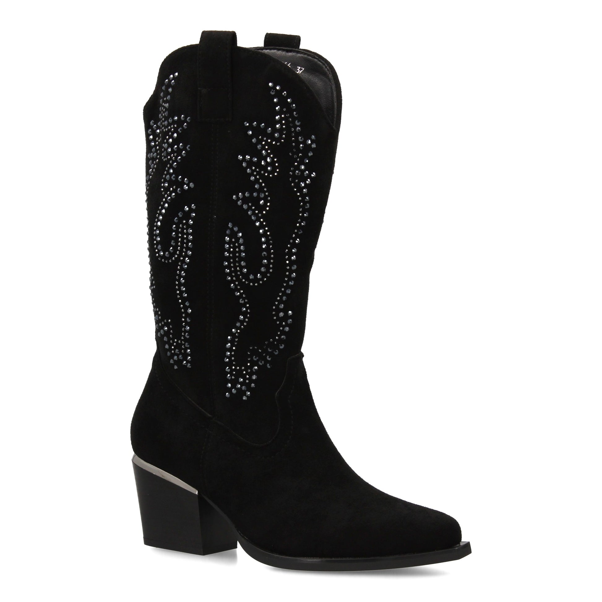 Bota de Mujer con Detalles brillantes elegantes en la caña y tacón comodo para E