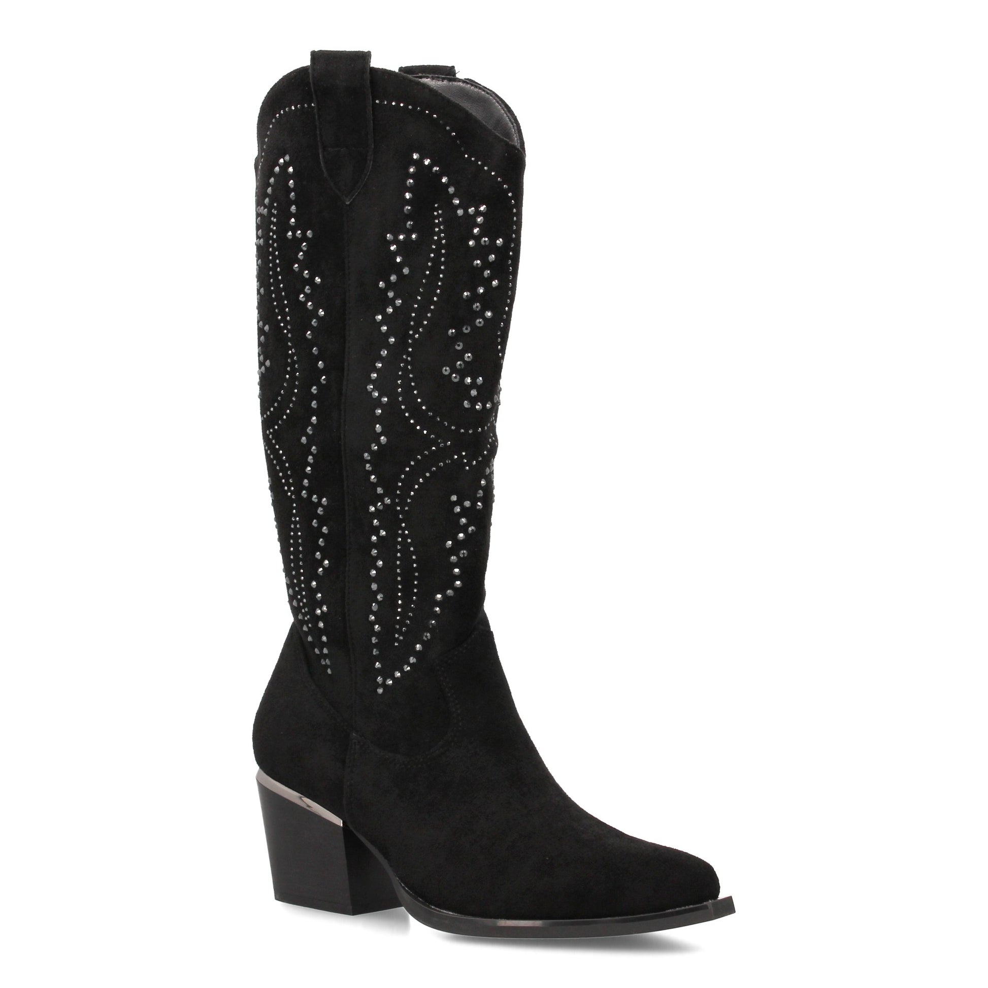 Botas de mujer con Diseño elegante y detalles brillantes ideales para destacar en cualquier ocasión con su elegante silueta sujeción cómoda gracias a su tacón cubano de 6cm. Estilo cowboy con cierre lateral de cremallera.