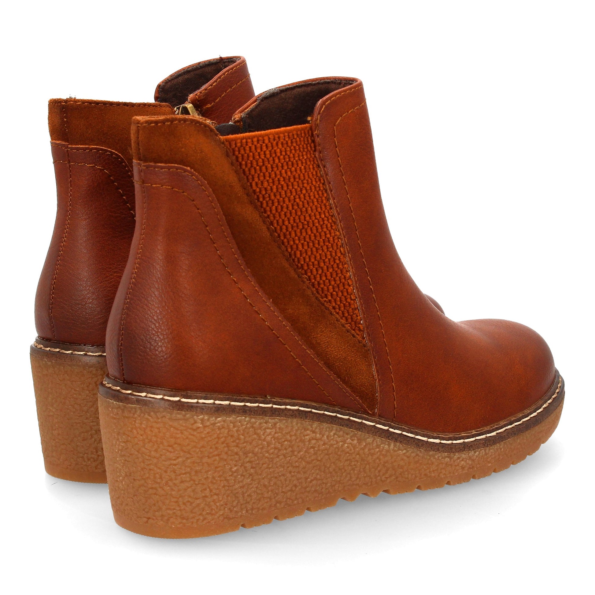 Botín para mujer con cuña y elástico en el lateral estampado liso y cierre de cremallera. Ideal para la temporada de otoño invierno. Comodo para uso diario.