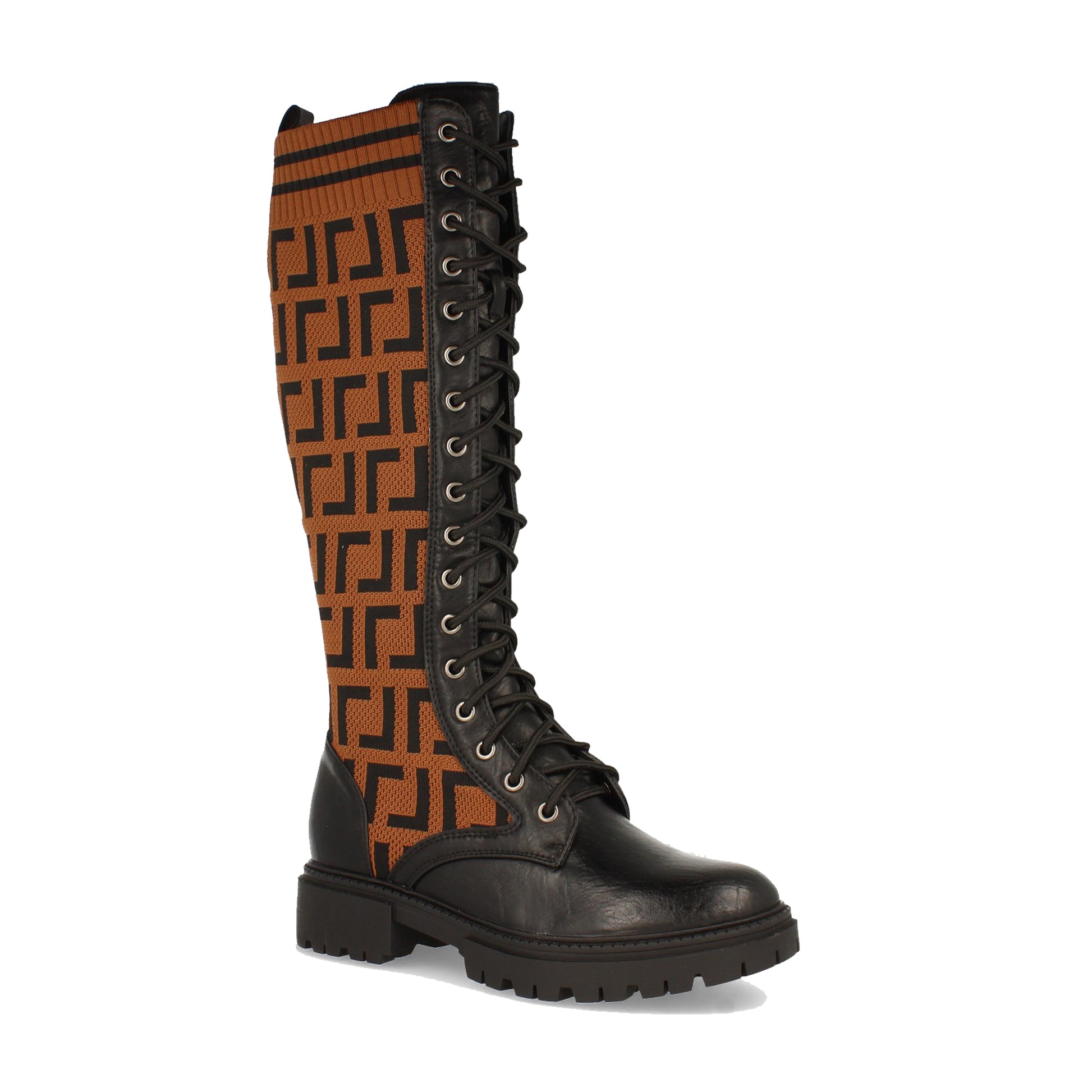 Bota Plana para Mujer con Grabados Etnicos en el Elastico y Cierre de Cordones Otoño Invierno